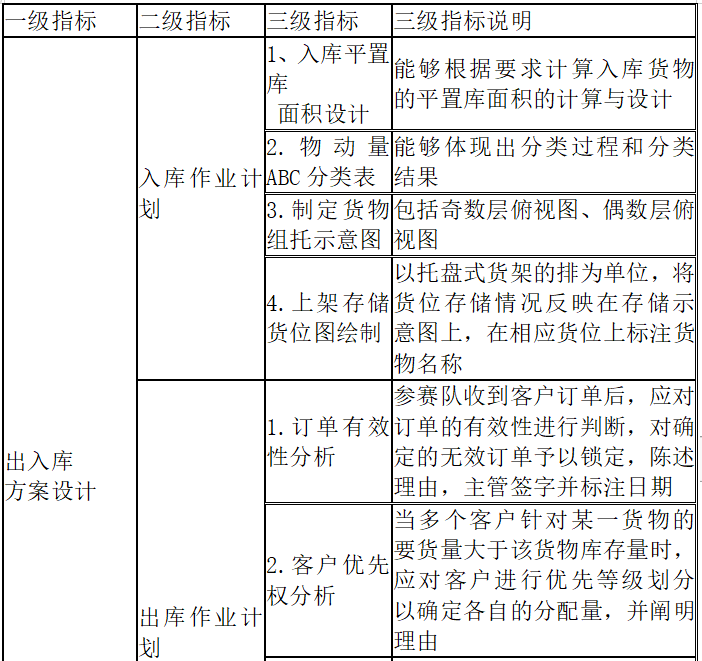 2.赛程由入库业务方案设计和出库业务方案设计两部分组成。