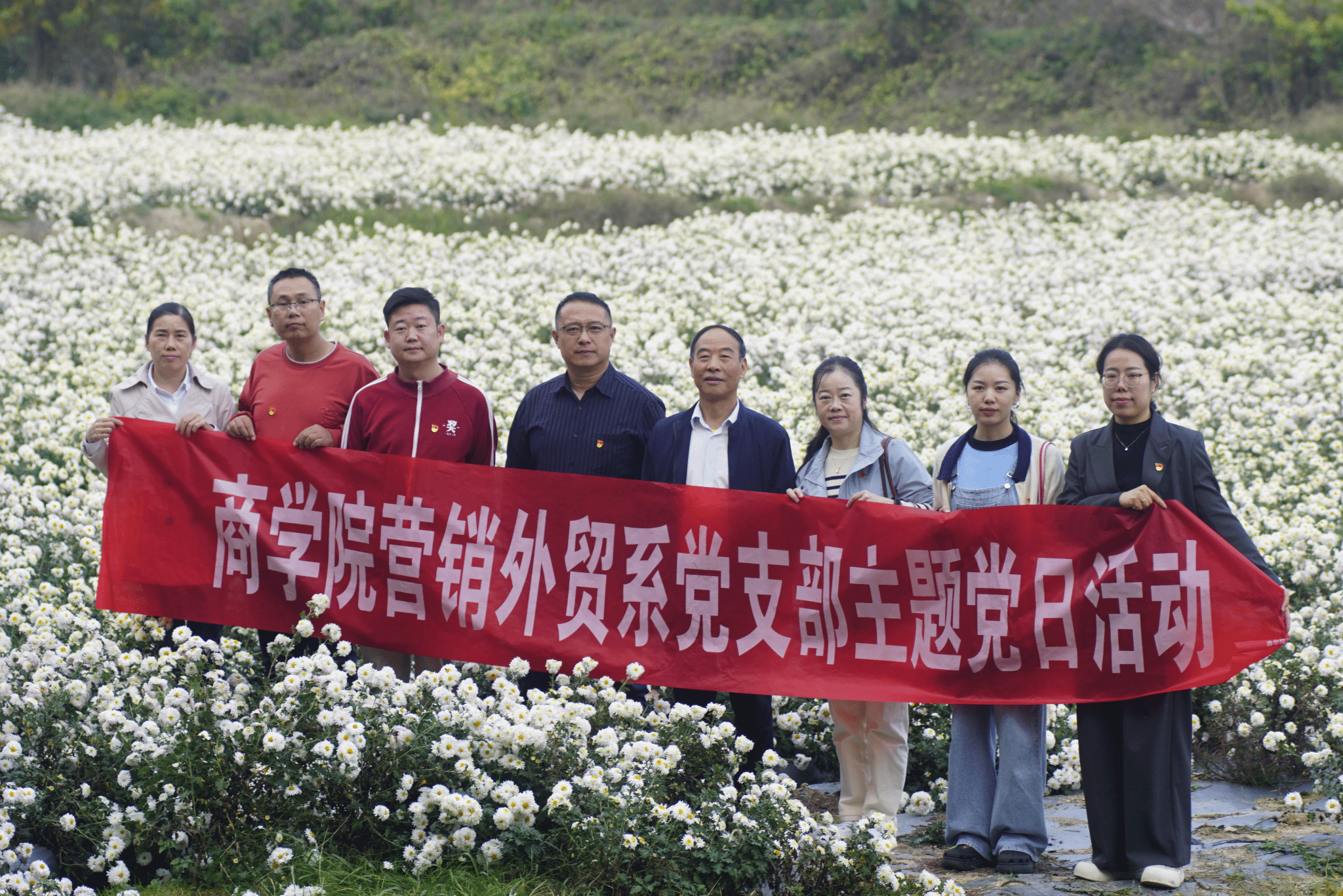为进一步推进支部党建工作的创新发展,持续加强党支部“启智润心”品牌建设,提高党员将教育教学融入服务乡村振兴实践的能力,更好地服务地方社会经济发展,11月15号下午营销外贸系党支部全体党员赴滁州金玉滁菊生态园,体验滁菊种植、采摘和加工过程,深入了解滁州市非物质文化遗产“菊茶”的制作工艺。