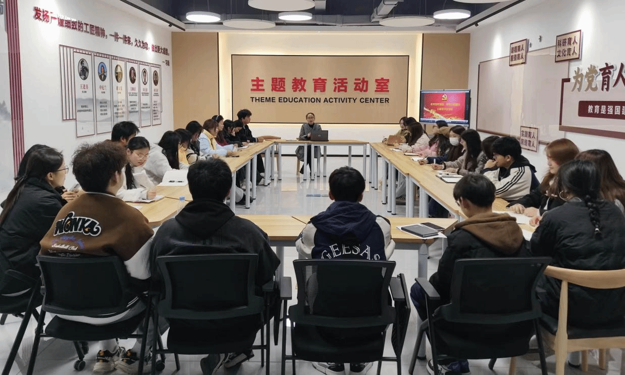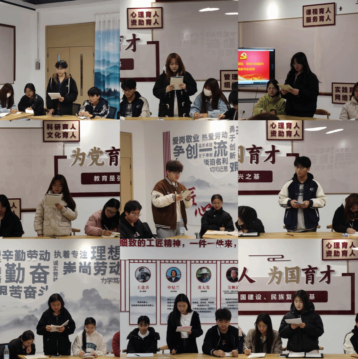 为了深入学习贯彻党的二十届三中全会精神,协力推进商学院省级“三全育人”思政育人品牌建设,扎实开展电商党支部“明理增信 崇德力行”党建品牌活动,11月22日晚,电商党支部委员、支部读书会小分队成员李有莉老师在“一站式社区”的主题教育活动室主持开展“读原著,学原文,悟原理”第六次主题读书会活动。本次读书会主题为“教育强则国强,青年兴则国兴”,2024级电子商务系各班班长、团支书、学习委员等优秀学生骨干积极参加。