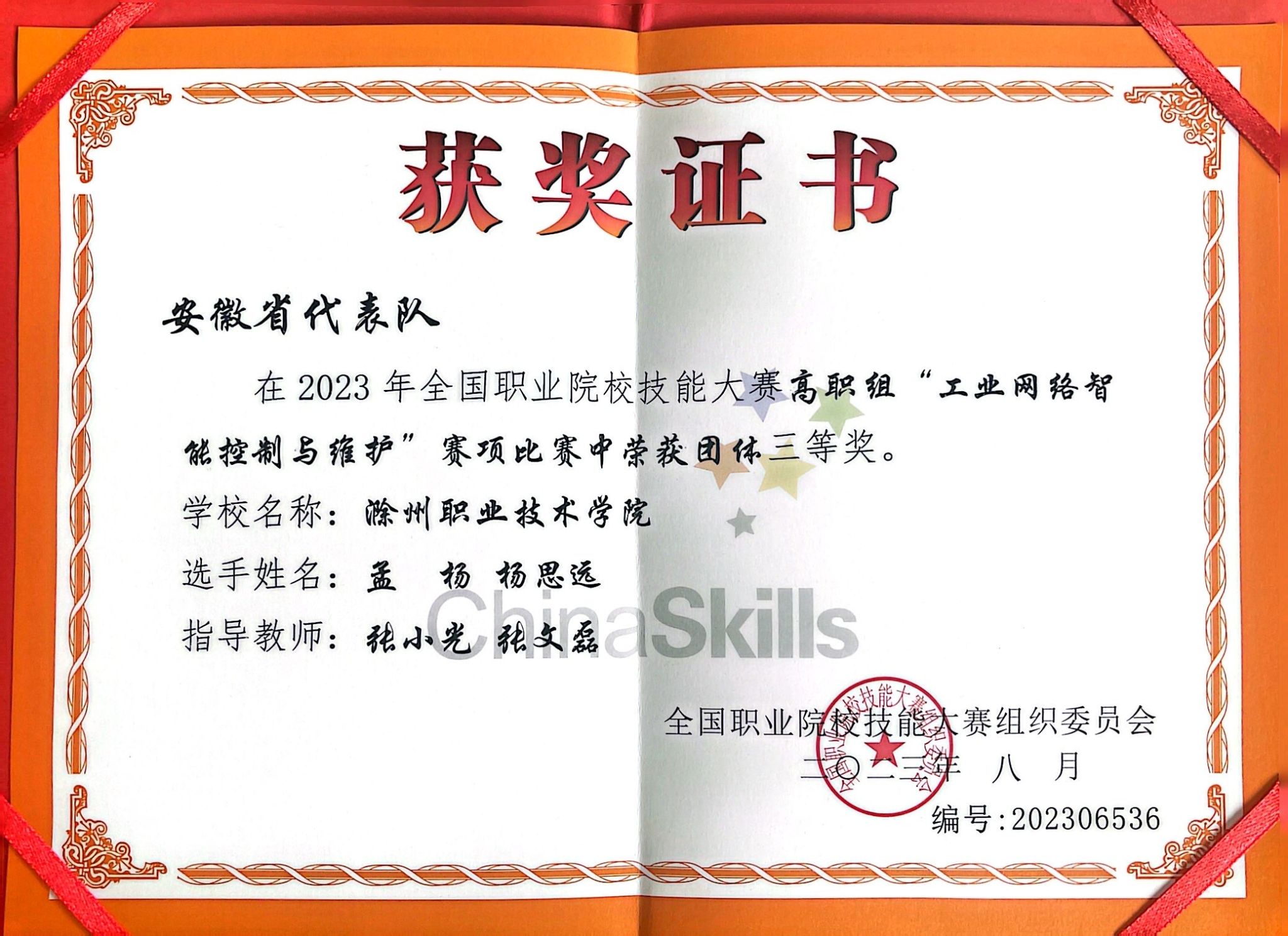8月14日至17日,2023年全国职业院校技能大赛(高职组)“工业网络智能控制与维护(教师合赛)”赛项在包头职业技术学院举行,来自全国各省市共92所高职院校的76支学生参赛队和55支教师参赛队展开激烈角逐。awc官网代表安徽省参加学生赛道、教师赛道的角逐。在校党委副书记、校长许雪峰带领下,教师张小光、张文磊指导下,21级工业机器人技术专业的孟杨、杨思远同学,沉着应战,奋勇拼搏,最终荣获该赛项学生组三等奖;张小光、张文磊两位老师同时荣获教师组二等奖,实现awc官网装备制造大类该项赛事新突破。