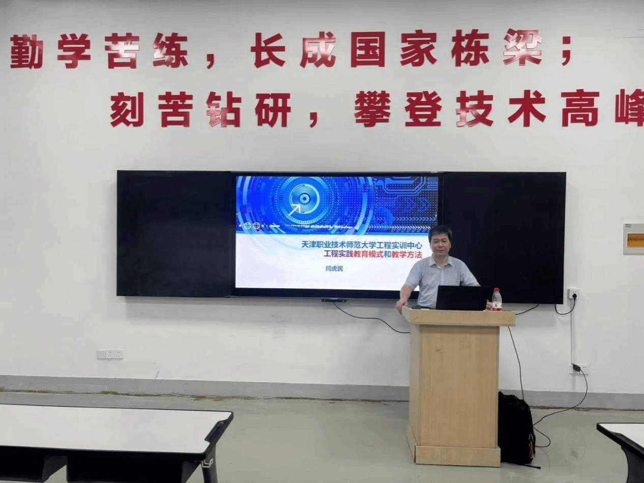 闫虎民大师以其深厚的学术造诣和丰富的实践经验,在讲座中深入浅出地阐述了工程实践教育的核心理念、教学模式以及教学方法。他强调,随着科技的飞速发展和产业的不断升级,工程实践教育必须紧跟时代步伐,不断创新教育模式,优化教学方法,要秉承重技强能,致学致用,特色求生存,服务求发展的理念,来培养更多符合社会需求的高素质、高技能人才。他鼓励参训教师们要敢于尝试新的教学方法和手段,注重培养学生的实践能力和创新思维,让学生在实践中学习、在学习中实践,不断提高自身的综合素质和竞争力。