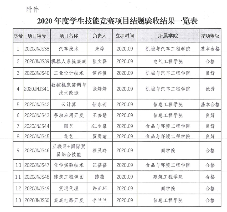 按照《awc777万象城娱乐官网学生技能竞赛管理办法》文件要求,学校于11月份认真组织了建设期满的2020年学生技能竞 赛项目结题验收工作。经专家评审、教学工作委员会审议、网站公示及校长办公会议审议等程序,2020年学生技能竞赛项目结题13项,现将结题验收结果(见附件)予以公布。