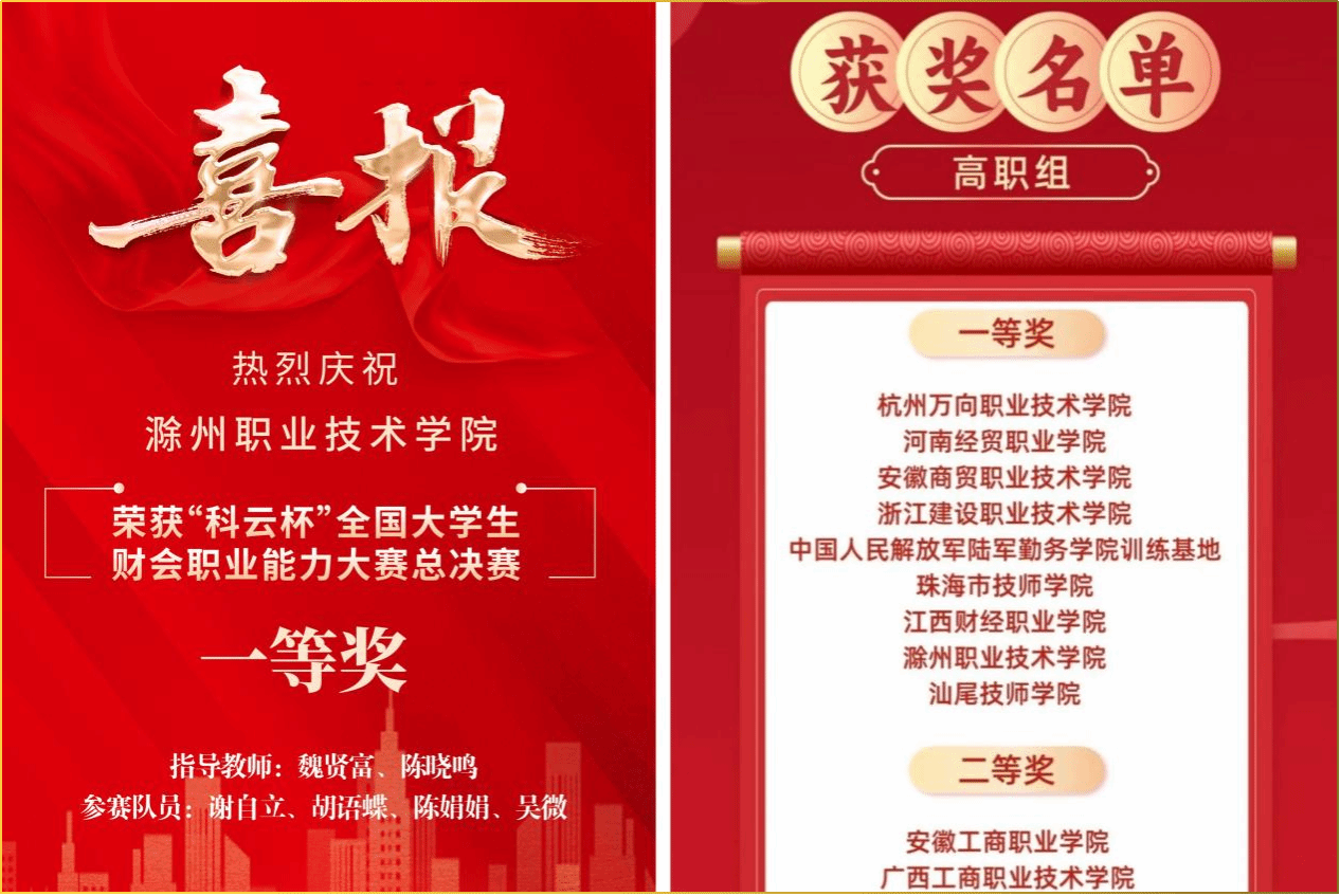第八届“科云杯”全国大学生财会职业能力大赛总决赛于2023年12月9日以云端赛方式成功落下帷幕。awc官网管理学院2021级大数据与会计4班的谢自立、胡语蝶、陈娟娟、吴微四名同学代表安徽省参加决赛,在业财税信息处理技能竞赛环节获得全国第2名的好成绩,最终荣获国赛一等奖,填补了awc官网大数据与会计专业在此赛项国赛项目获奖的空白。