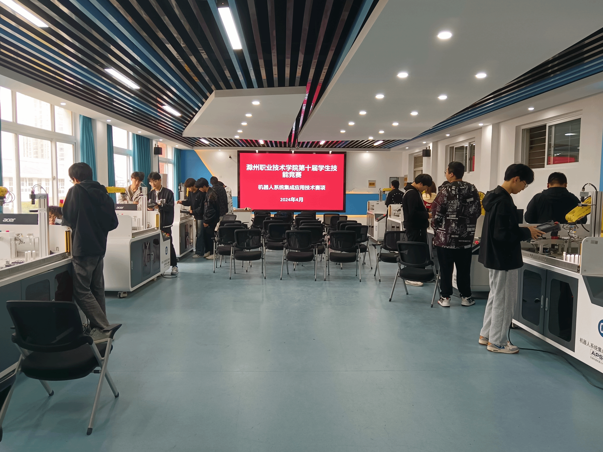 为充分发挥职业技能竞赛在人才培养中的作用,创新人才培养模式,提升大学生实践创新能力,坚持以赛促学、以赛促教、以赛促改的宗旨,努力形成“赛教融合”、“赛训融合”的比赛格局,我院于2024年4月15日在7S308实验室举办机器人系统集成应用技术赛项。