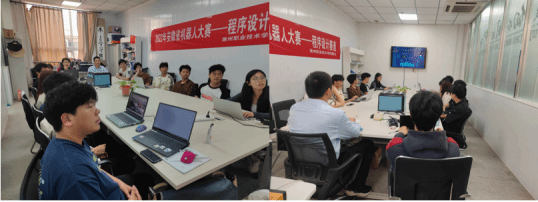 比赛开始前,首先宣读比赛规则和注意事项。本次比赛分A、B类进行,A类赛采用作品展示汇报的方式进行,B类采用现场上机答题的方式进行。比赛期间信息工程学院副院长邹军国通过线上开展指导工作,经过三个小时的角逐,最终有21支队伍脱颖而出,斩获一二三等奖。