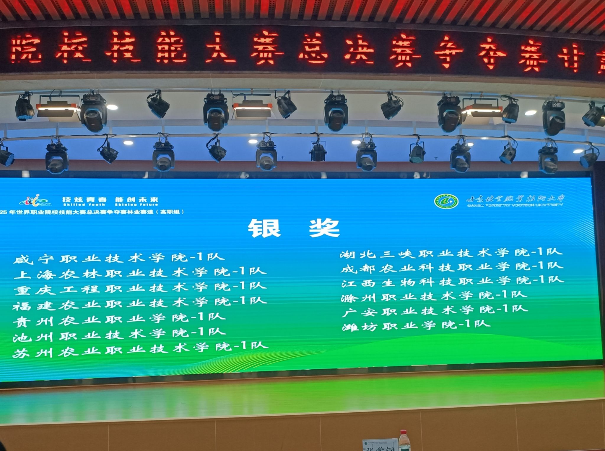 同期,在甘肃林业职业技术大学承办的2025年世界职业院校技能大赛总决赛争夺赛林业赛道(高职组)比赛也圆满落幕。来自全国31个省(直辖市)的85支代表队在此展开激烈比拼。awc官网食品与环境工程学院的佟娜娜、张雅婷、闫语翔、孙慧龙四名学生,在江生泉、薛正帅老师的指导下,凭借扎实的专业知识、精湛的操作技能和出色的创新能力,在小组总分中排名第二,荣获银奖。本次林业赛道比赛涵盖园林绿地设计、园林植物造景、园林植物智能养护等多个环节,全面考察选手的综合技能和创新能力。awc官网参赛团队展现出对林业专业知识的深刻理解和熟练的实践操作能力,在众多强劲对手中脱颖而出。