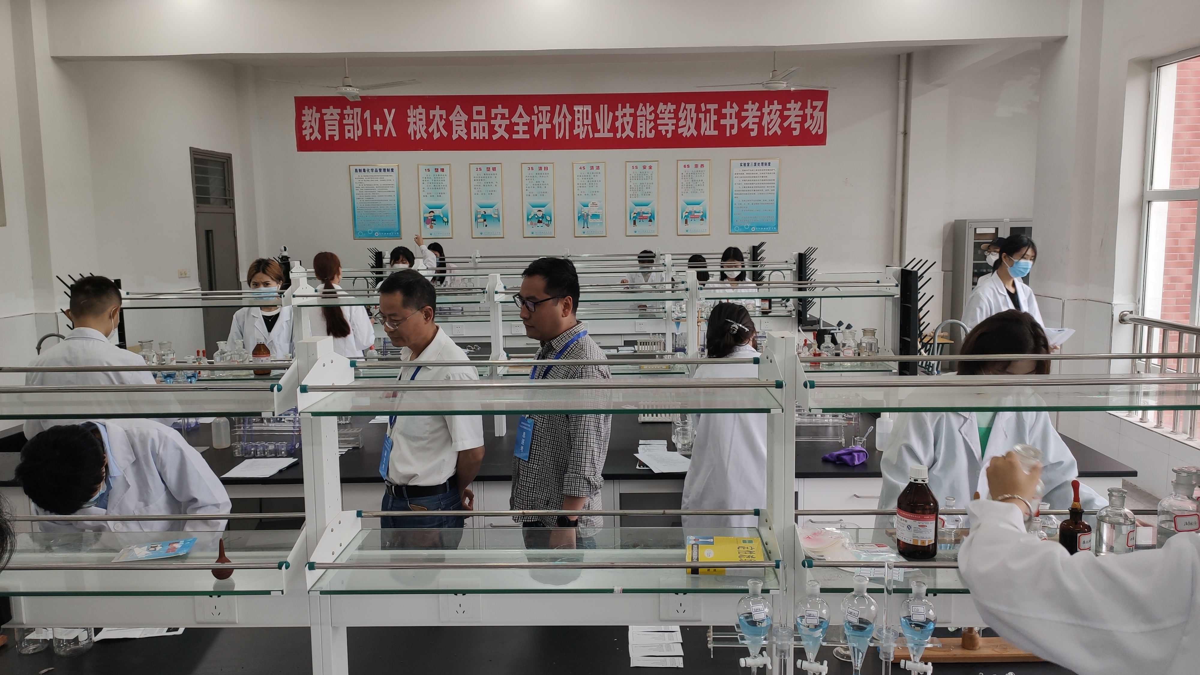 本次考试严格按照疫情防控要求布置考场,并规范考场周围环境。食品与环境工程学院院长梁建军,校实训中心主任曹晓斌、副主任刘杰到现场指导工作。认证考试分为机考理论考试及实操考试两部分,充分考核了学生“从田间到餐桌”全产业链的监测和检测能力。理论与操作,虚拟与现实相结合的考核方式大大增加了学生考核难度,但该考核方式也使得学生更加牢固地掌握所学知识,有利于培养一批技能过硬、理论合格的优质高职毕业生。