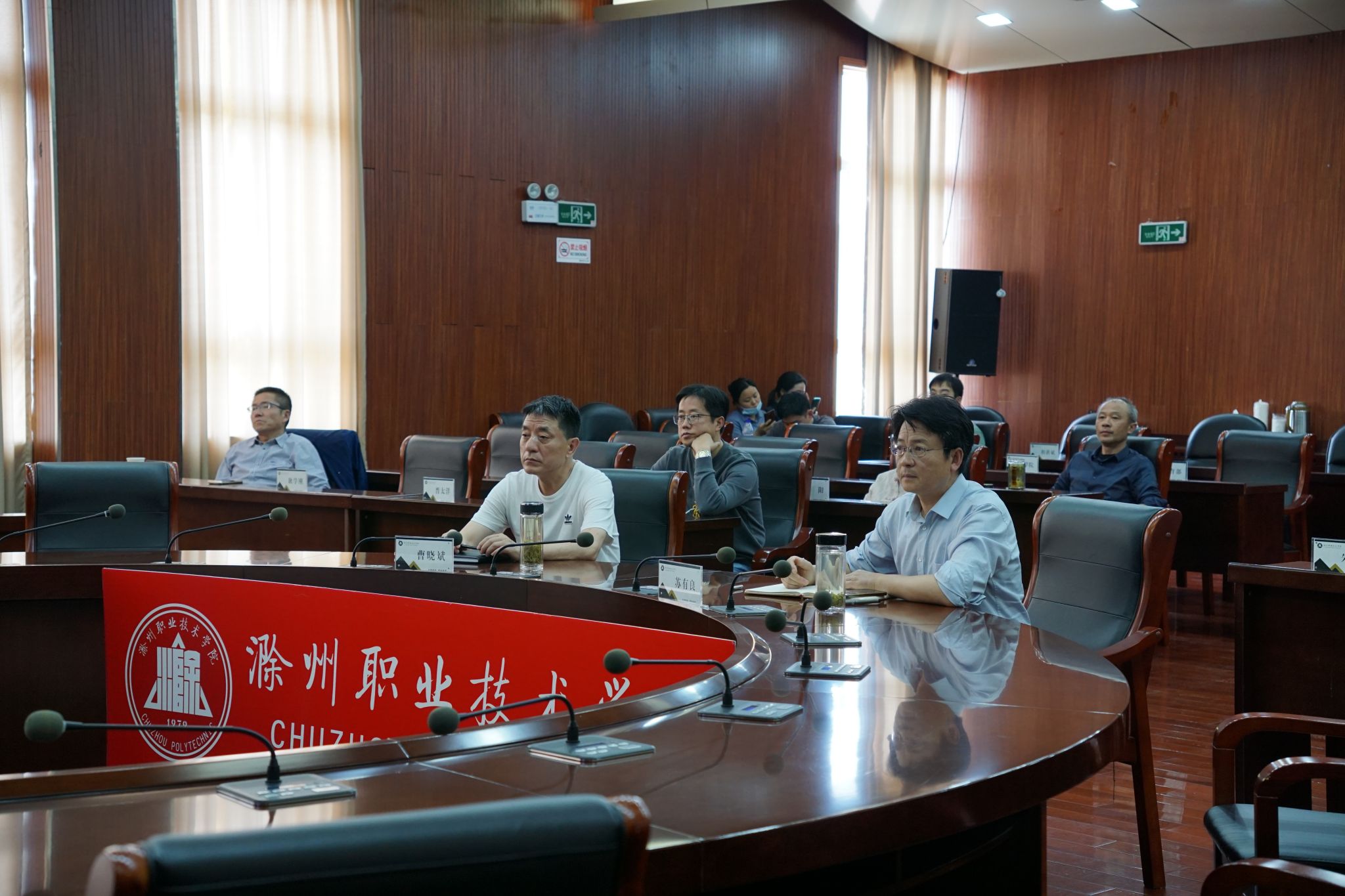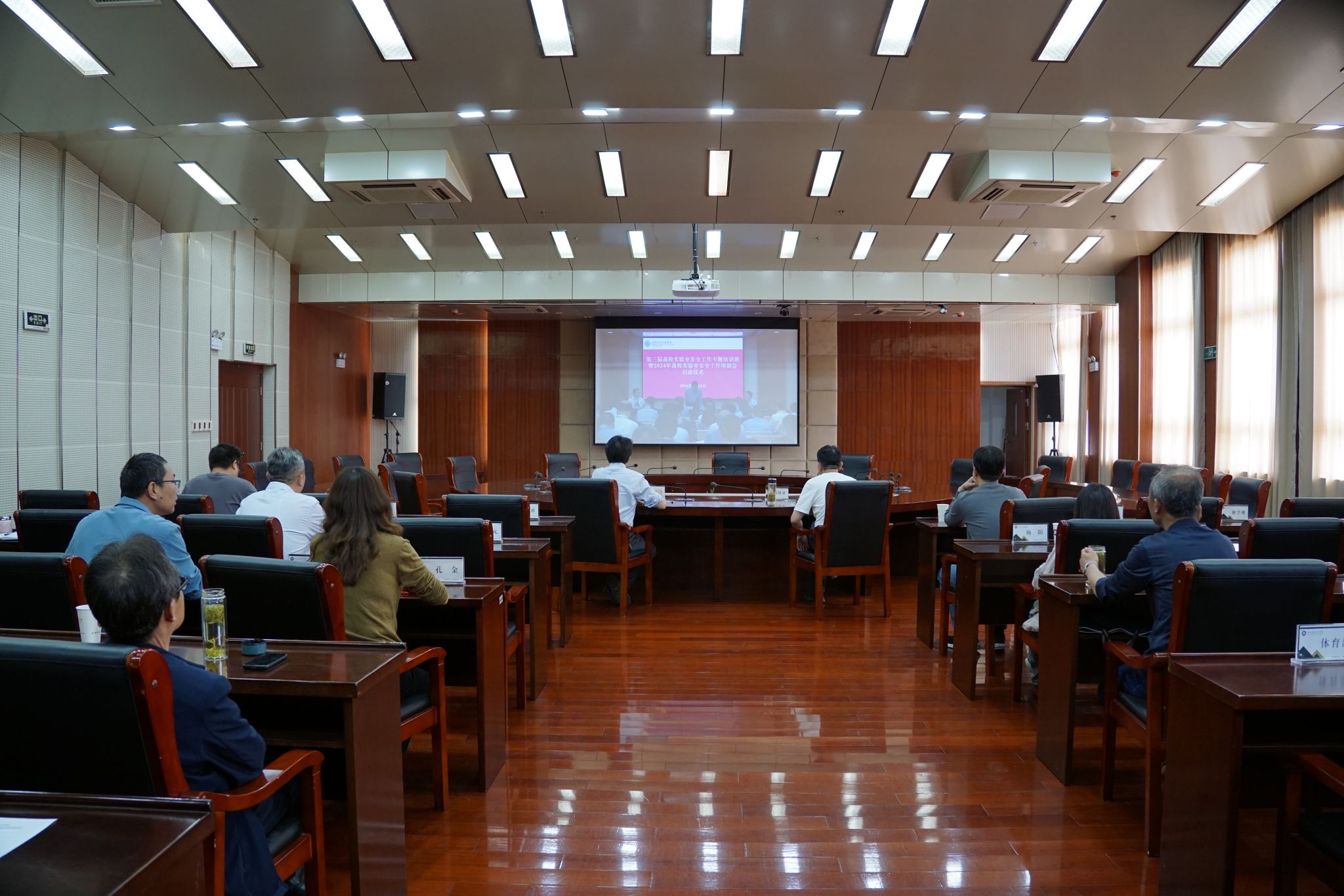4月26日,为确保高校实验实训室安全运行,保障广大师生人身安全和校园稳定,教育部科学技术与信息化司、高等教育司以线下线上相结合的方式组织召开2024 年高校实验室安全工作培训会,学校在综合楼11楼会议室设分会场,校党委委员、副校长苏有良,实验实训中心主任曹晓斌,各教学院部院长、书记,各专业实训中心主任参加会议。