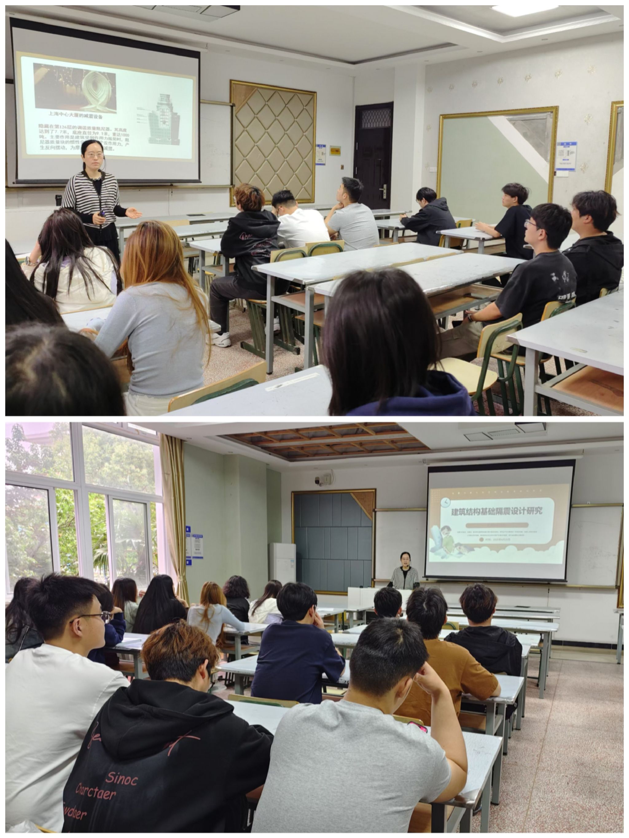 2025年4月25日上午8:00-9:30,建筑工程学院林秋怡副教授在建筑技术综合实训管JG102教室,开展了题为“建筑结构基础隔震设计研究”的讲座,学生一起探讨了隔震结构分析与设计,建筑工程学院相关专业学生听取了讲座。