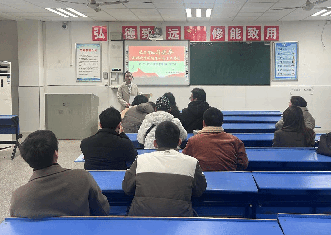 为全面落实本次主题教育的目的,深入学习贯彻习近平新时代中国特色社会主义思想,12月13日下午,建筑技术系党支部书记冯环同志讲授题为《党建引领 持续推进师德师风建设》的专题党课,支部全体党员参加。