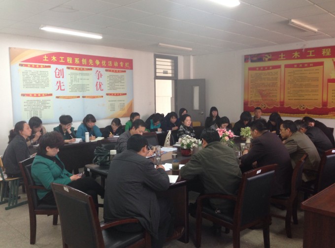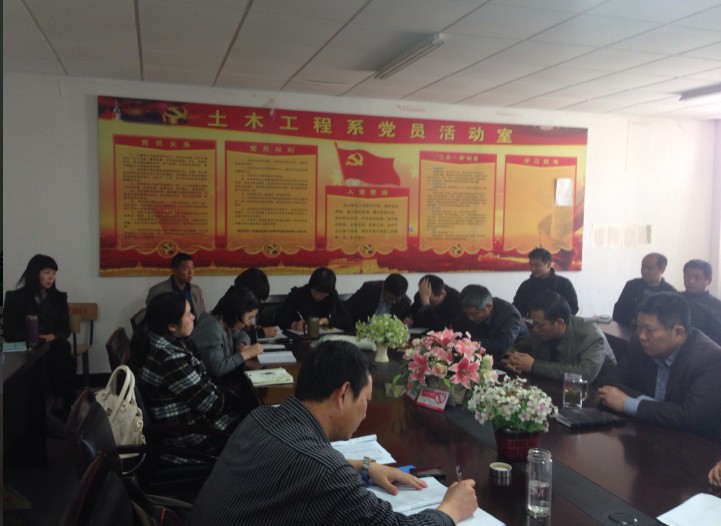 2014年4月2日下午,土木工程系在3楼会议室召开了“深化教育改革,促进学院内涵式发展”主题讨论会,系党总支书记首先在会议指出本次会议是党的群众路线实施过程中的一次党员活动,旨在加强我系的课程建设和专业建设,进一步提高学生们在新形势下的学习积极性,并要求每一位教职工要做到“爱岗敬业、诚信友善”,要深入群众,切实解决广大学生们在工作、学习和生活中遇到的问题。