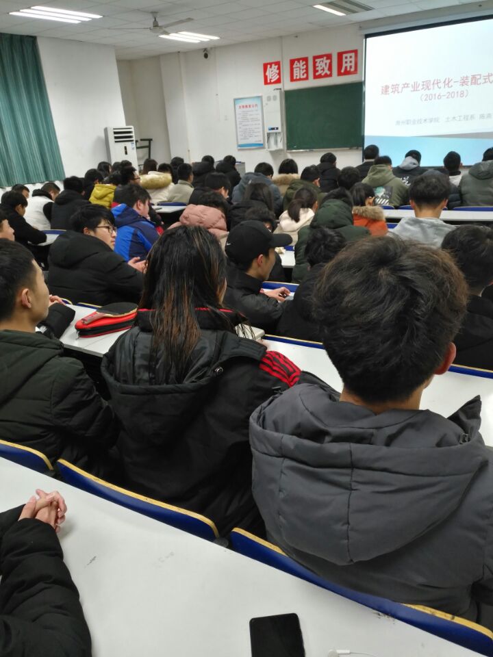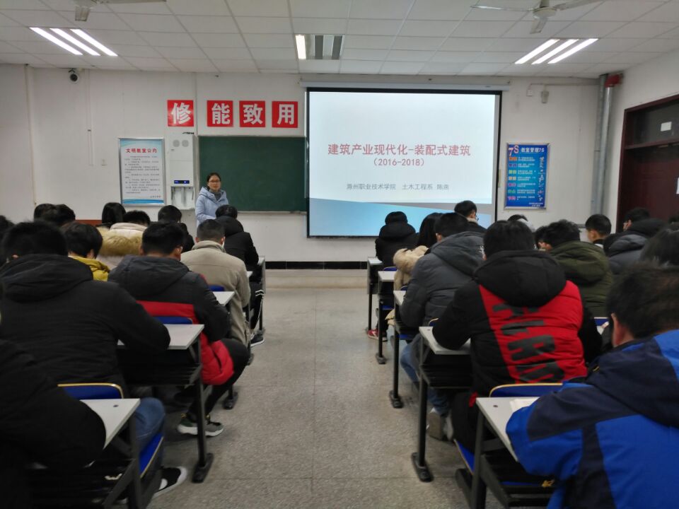 土木工程系陈燕副教授于12月27日晚6时30分—8时30分,在土木工程系教学楼4102教室,举办题为《建筑产业现代化-装配式建筑》(2016-2018)学术讲座,土木工程系建筑工程技术、工程造价和工程监理专业的百余名学生参加了讲座。