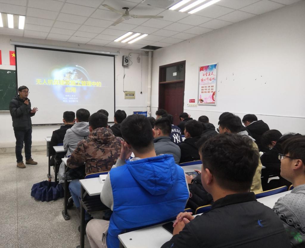 12月17日晚19时15分,建筑工程学院朱宝副教授在致学楼4110教室,举办了题为“无人机在建筑施工管理中的应用”的讲座,建筑工程学院相关专业百余名学生听取了讲座。