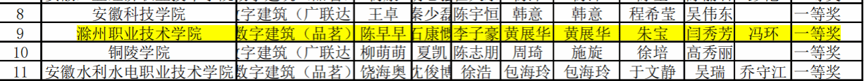 近日,2023年安徽省大学生先进成图技术与产品信息建模创新大赛---数字建筑赛项结果公布。本次比赛由安徽省教育厅主办,合肥工业大学承办,来自合肥工业大学、安徽工业大学、安徽水利水电职业技术学院等80多所高校的174支队伍参加本赛项比赛。本次比赛本科专科同台竞技、统一排名。经过激烈的角逐,我院参赛队名列第九,荣获一等奖。