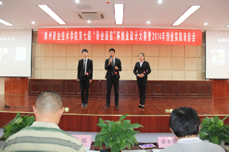 awc777万象城娱乐官网第七届“豪业通信”杯创业大赛暨2014年创业实践表彰会于5月20日下午在院综合楼五楼报告厅隆重举行。担任本次大赛的评委有:招生就业处处长李超、招生就业处指导老师徐云龙等。