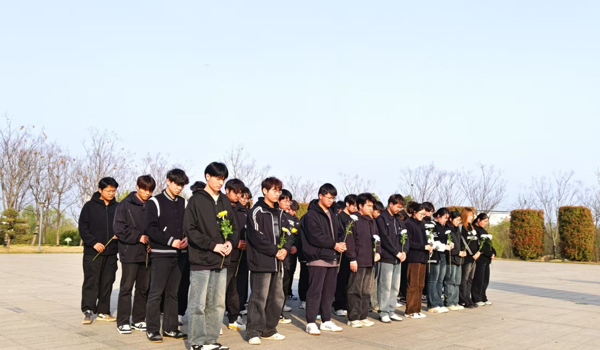 当日,阳光微微洒在镜园的每一个角落,参与活动的学生们怀着崇敬与庄严的心情踏入镜园。在革命烈士纪念碑前,学生们整齐列队。活动在庄严肃穆的氛围中拉开序幕,首先是集体默哀仪式,全体人员低头静立,三分钟的默哀时间里,安静得只能听见微风拂过树叶的沙沙声,大家都沉浸在对革命先烈深深的缅怀之中。默哀结束后,代表们向烈士纪念碑敬献鲜花,那一束束娇艳的鲜花,代表着对英烈们无尽的思念和敬意。学生会主席发表感言,表达了对先烈们的敬仰之情,同时讲述着革命先烈们的英勇事迹,呼吁全体学生铭记历史,传承先烈遗志,在新时代的征程中努力奋斗,为实现中华民族伟大复兴的中国梦贡献自己的力量。