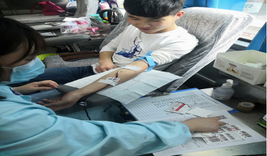 现场,同学们有秩序的走上献血车,车上医务人员对大家进行了一系列健康检查,随后开始了本次献血活动。