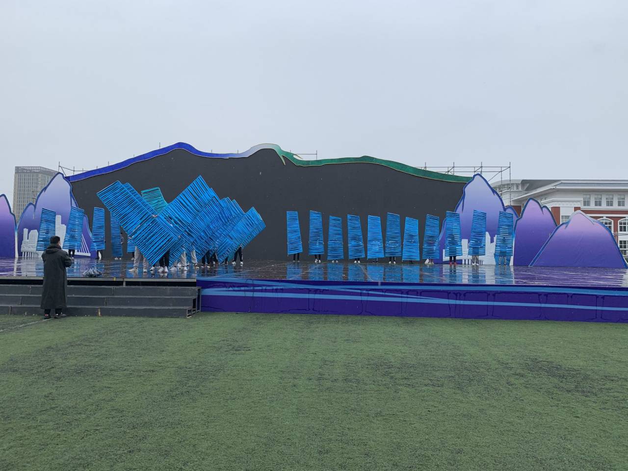 为了19号全运会开幕式呈现出最完美的状态,同学们都听从导演指挥冒雨排练,用蓬勃向上的精神和整齐划一的动作展示了土木学子的独特魅力。