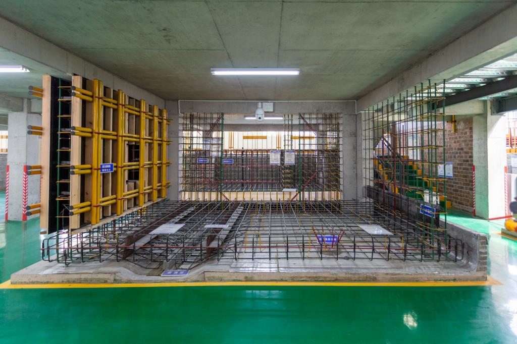 建筑工法楼实训基地,所含的砖混结构、框架剪力墙结构、钢结构三大部分的各节点形成对应的结构体系。砖混、混凝土、钢结构之间有变形缝,并有机的将300多年分部分项建筑节点融合为一个整体建筑物,满足整体性、标准性、实用性等要求。主要用于建筑构造认知实训;主体结构施工实训;装饰施工工艺实训;建筑设备工程实训;建筑结构认知实训;地基与基础工程施工实训;防水工程施工实训;质量事故分析实训;施工放线实训等。