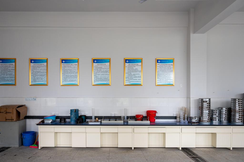 混凝土实验实训室主要承担砂石筛分试验;混凝土拌制和成型试验;混凝土和易性试验。本试验室主要设备和仪器有混凝土强制式搅拌机、数控磁力振动台、混凝土维勃稠度仪、砂石筛和标准振筛机、双端面磨石机、岩石切片机等。
