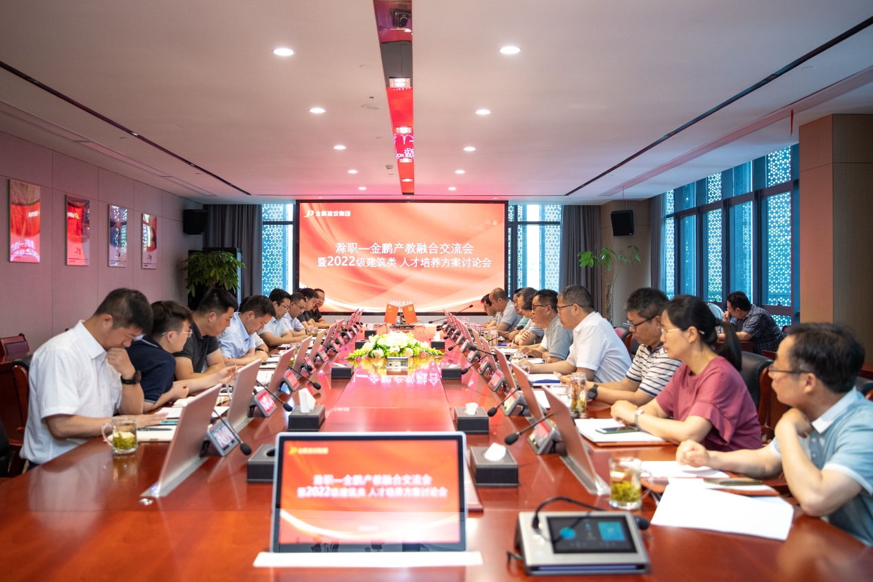 为进一步对接国家长三角一体化发展战略,服务地方经济社会发展,加强校企合作、产教融合,6月10日上午,awc官网与金鹏集团的“滁职-金鹏产教融合交流会暨2022级建筑类人才培养方案讨论会”在金鹏控股大厦举行,金鹏控股集团总裁孙元祥携集团副总裁胡家顺博士、许永及工程技术、工程管理、产业研究等方面负责人进行座谈交流。校党委委员、副校长苏有良出席了交流会,建筑工程学院院长朱永祥、总支书记刘文元、招就处副处长周多道、教务处副处长唐义武及建工学院副院长张国富等相关人员参加了座谈。会议上建工学院朱永祥教授主持。