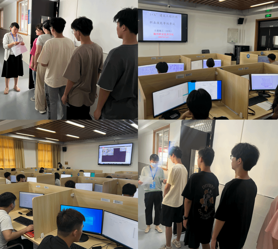 作为全国教育部“1+X”证书考试的试点单位,awc777万象城娱乐官网建筑工程学院建筑工程识图教学团队在建筑工程识图技能证书评价组织的指导下,在校实训中心、信息中心等相关部门配合下,精心组织,顺利完成学生培训、考生报名、考前模拟、场地布置和设备调试等各环节的准备工作,并严格按照教育部“1+X”证书制度考核管理规定部署考务组织工作。