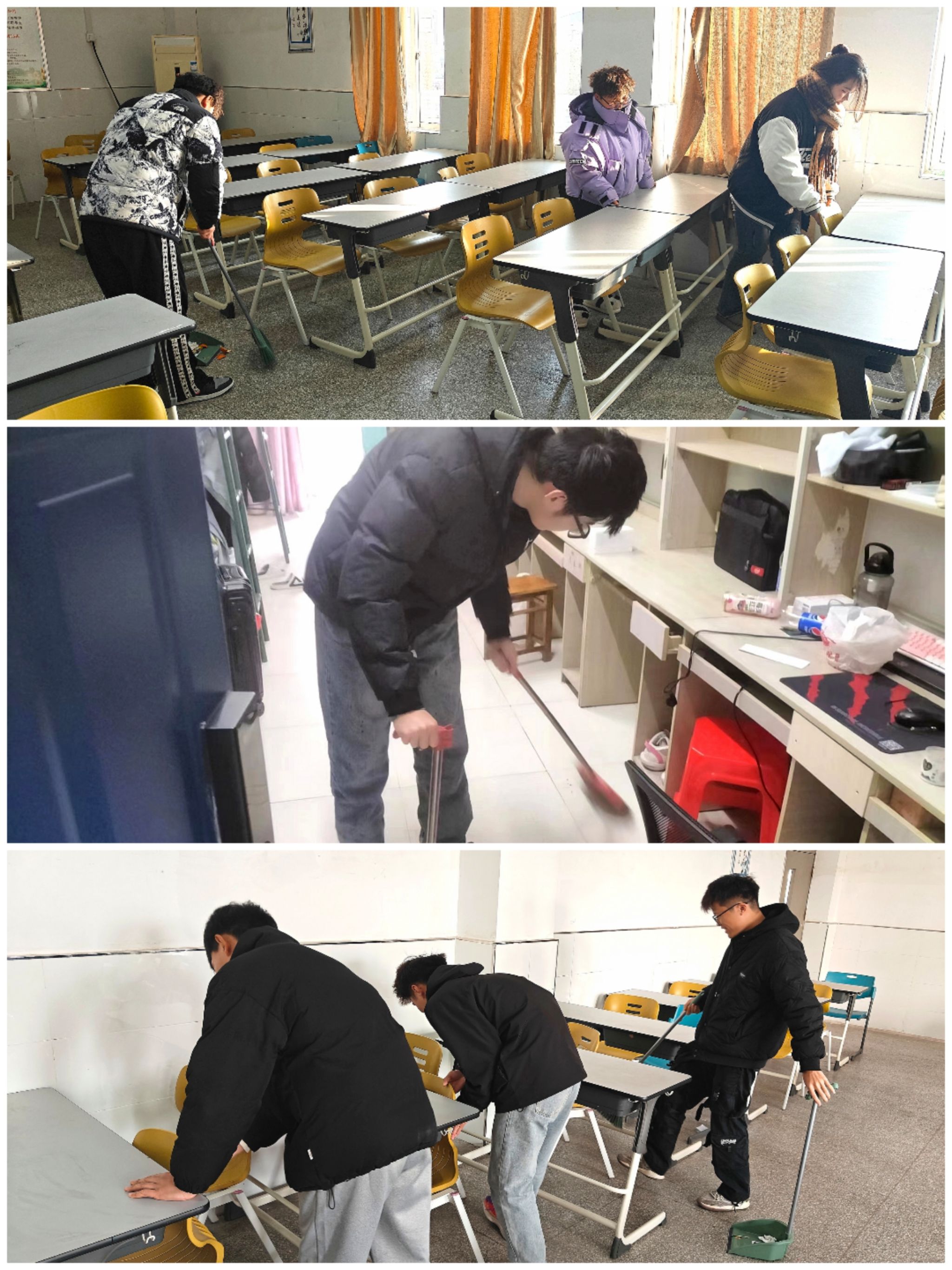 这次离校前卫生扫除活动由各班班委带头,工作做到责任明确,服从调配,合作有序。清扫过程中,同学们打扫细致入微,从地面到书桌,对教室、宿舍里的每一处都进行了仔细的打扫,做到不留卫生死角,不留盲区。大家齐动手,干劲十足,充分展现了我院学生团结、积极、努力、向上的精神风貌!