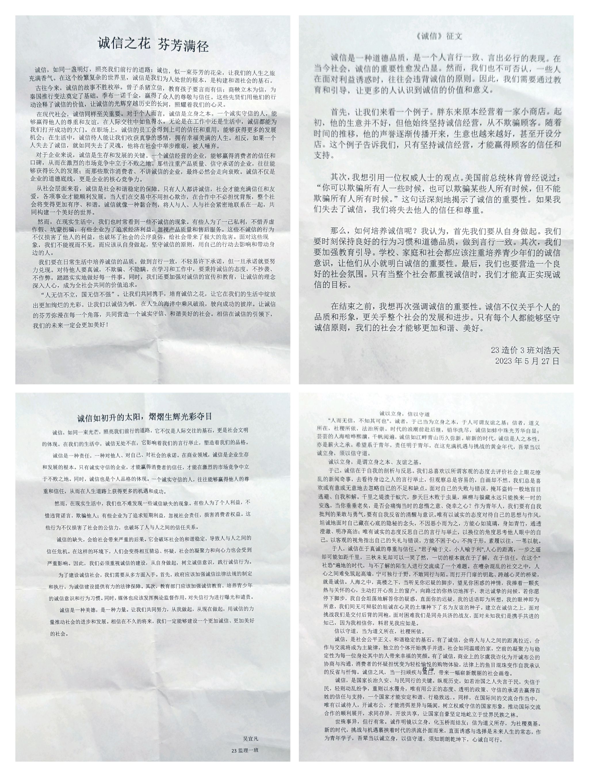 在作品中,同学们深刻领会“诚信”与“感恩”的关联,诚信在资助体系中的重要性。有的讲述自己真实的受资助经历、有的讲述关于诚信的故事,有的讲述诚信的意义;有的讲述见证过身边那些坚守诚信的资助事例。句句体现诚信在其中的作用。
