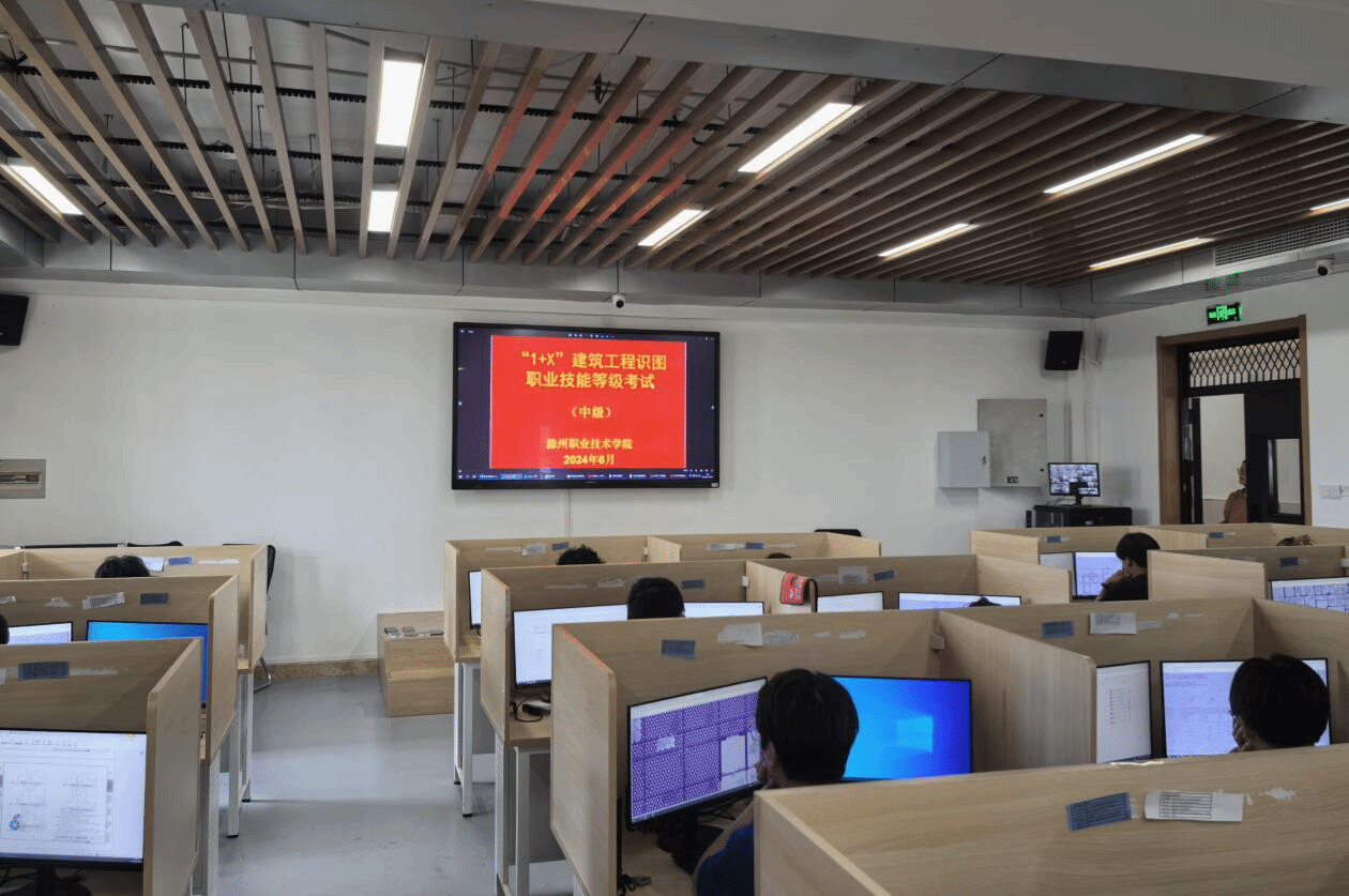本次考试由建筑工程学院的建筑工程识图教学团队承办。来自建工学院建筑工程技术、建设工程监理和工程造价三个专业的共计103名同学参加了考试。具体考试地点设在建筑技术综合实训馆的JG308机房,6月14日8:30——11:30考核的是建筑工程识图(初级)证书,6月15日8:30-12:00考核的是建筑工程识图——土建施工结构(中级)证书。考试采用闭卷机考的形式进行,中级和初级每个项目的考试均分为识图理论和绘图实操两场,考试的内容包含建筑施工图纸识读、CAD软件绘图等,全面考核学生的理论素养和实践能力。