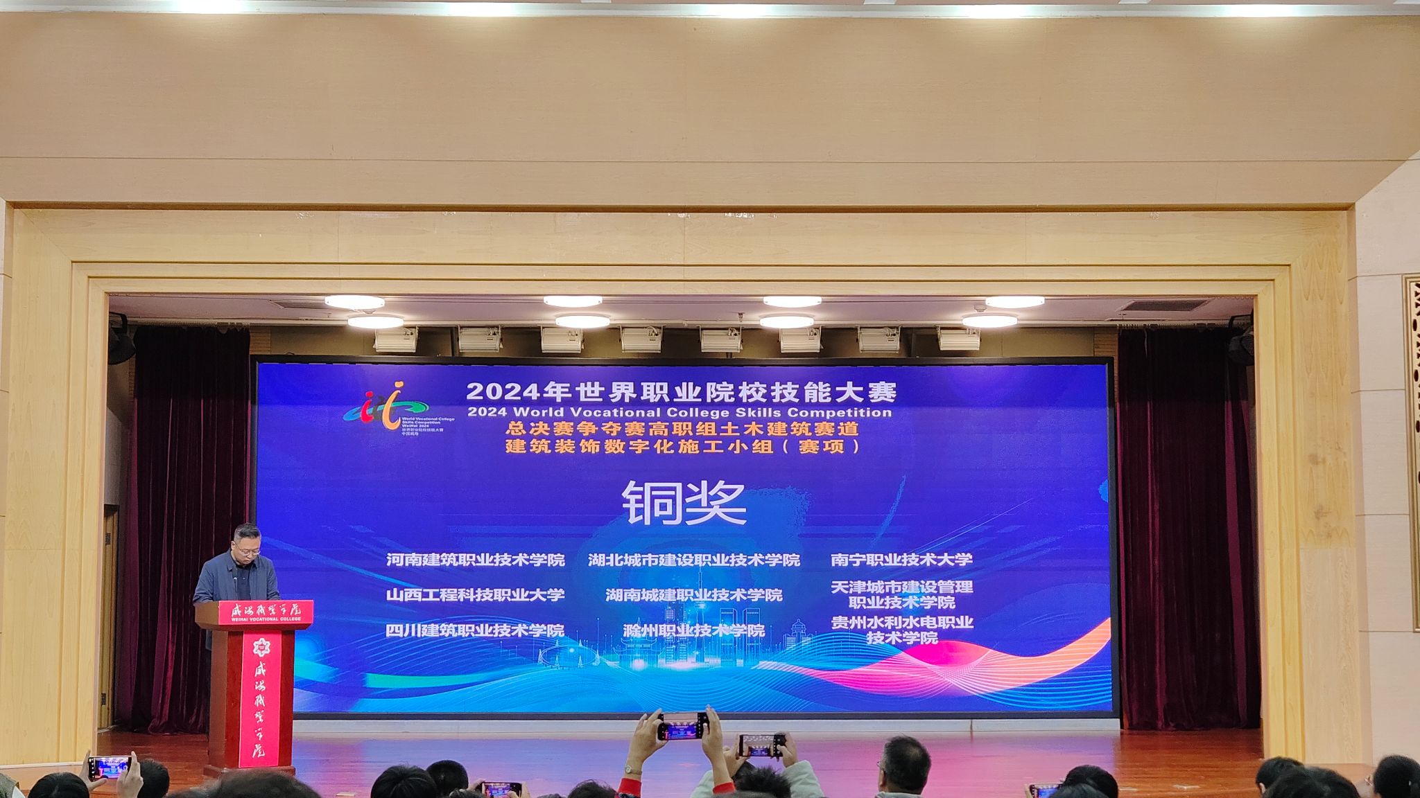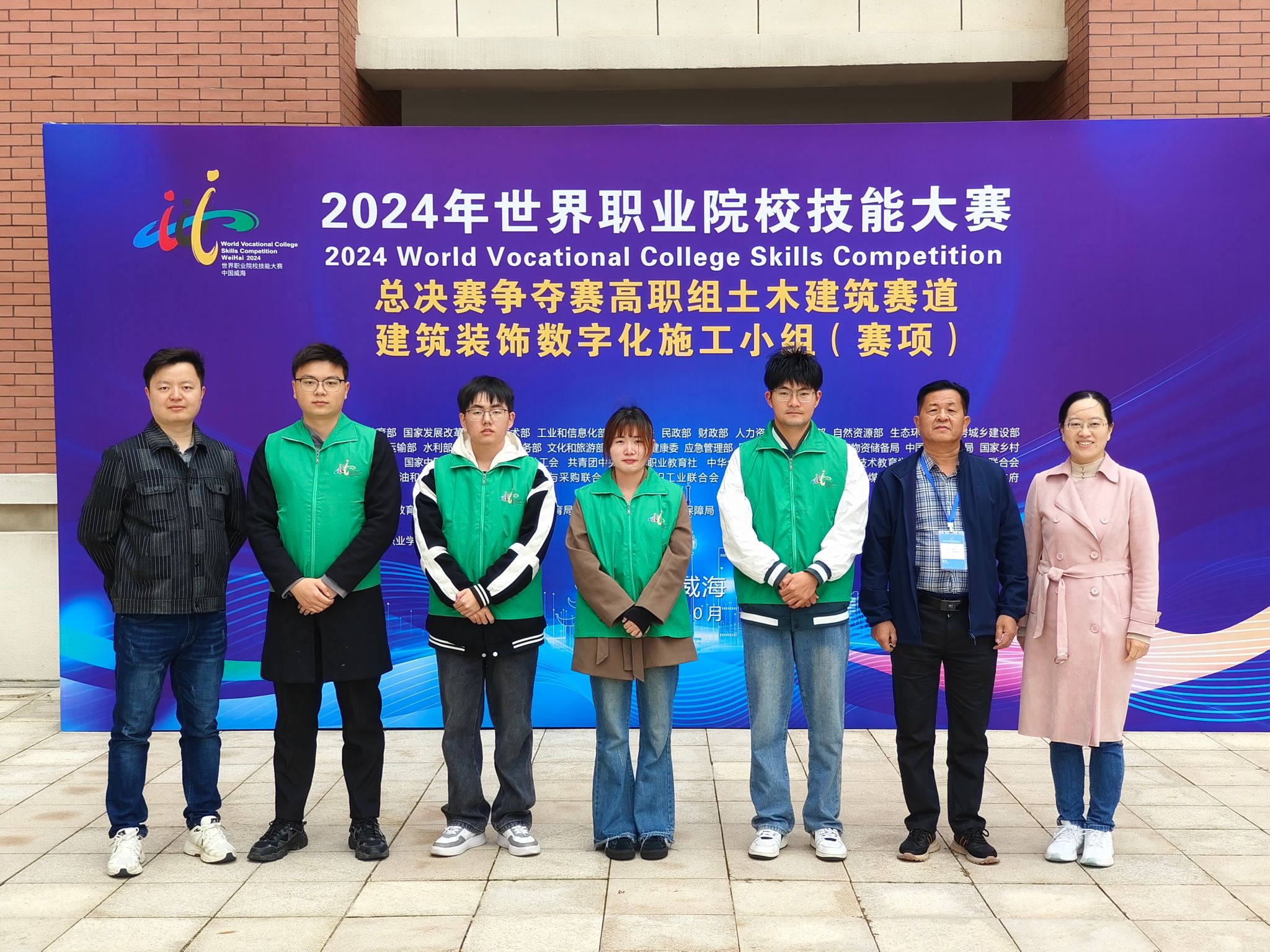 10月26日,2024年世界职业院校技能大赛总决赛高职组“建筑装饰数字化施工”赛项争夺赛在山东威海举办,共有来自全国30个省、市、自治区的60个代表队参赛。本届大赛主题是“技炫青春 能创未来”,突出“技能、学校和师生、国际交流”三大元素,展示职业学校师生精“技”求精、敢打敢拼、朝气蓬勃、积极向上的精神风貌。awc官网建筑工程学院朱永祥院长带队,谭启明、林秋怡老师指导的建筑装饰工程技术专业魏亚圳(毕业生)、董傲然、李宏喜、宋玉荣获铜奖。