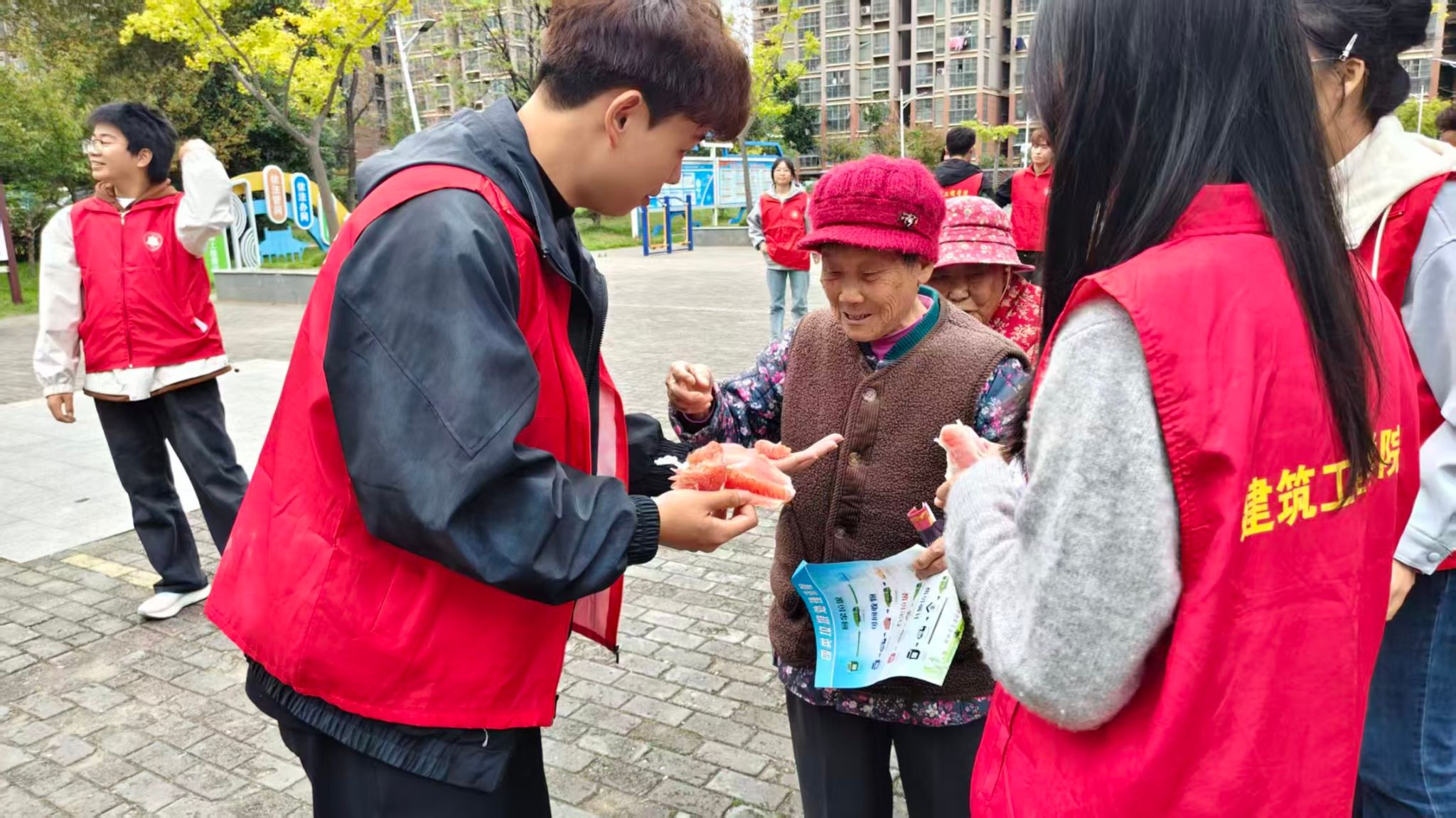 活动当天,建筑工程学院的学生化身“法治宣传员”,开启法治课堂。学生以社区发生的“虚假保健品推销”“冒充客服退款”等真实案例为切入点,用通俗的语言讲解反诈技巧,手把手教老年居民辨别诈骗短 信、核实陌生来电,通过分享水果,唠家常等方式拉近与老年居民的距离,更好地进行互动宣传法治教育。