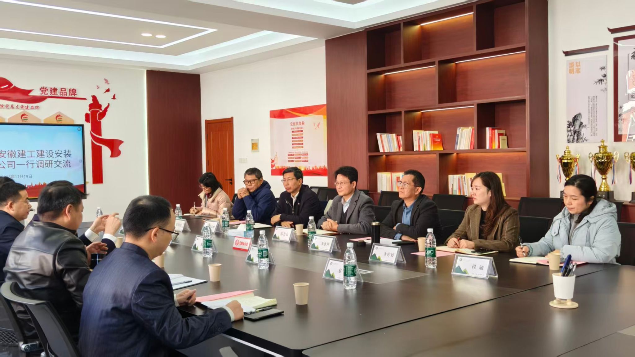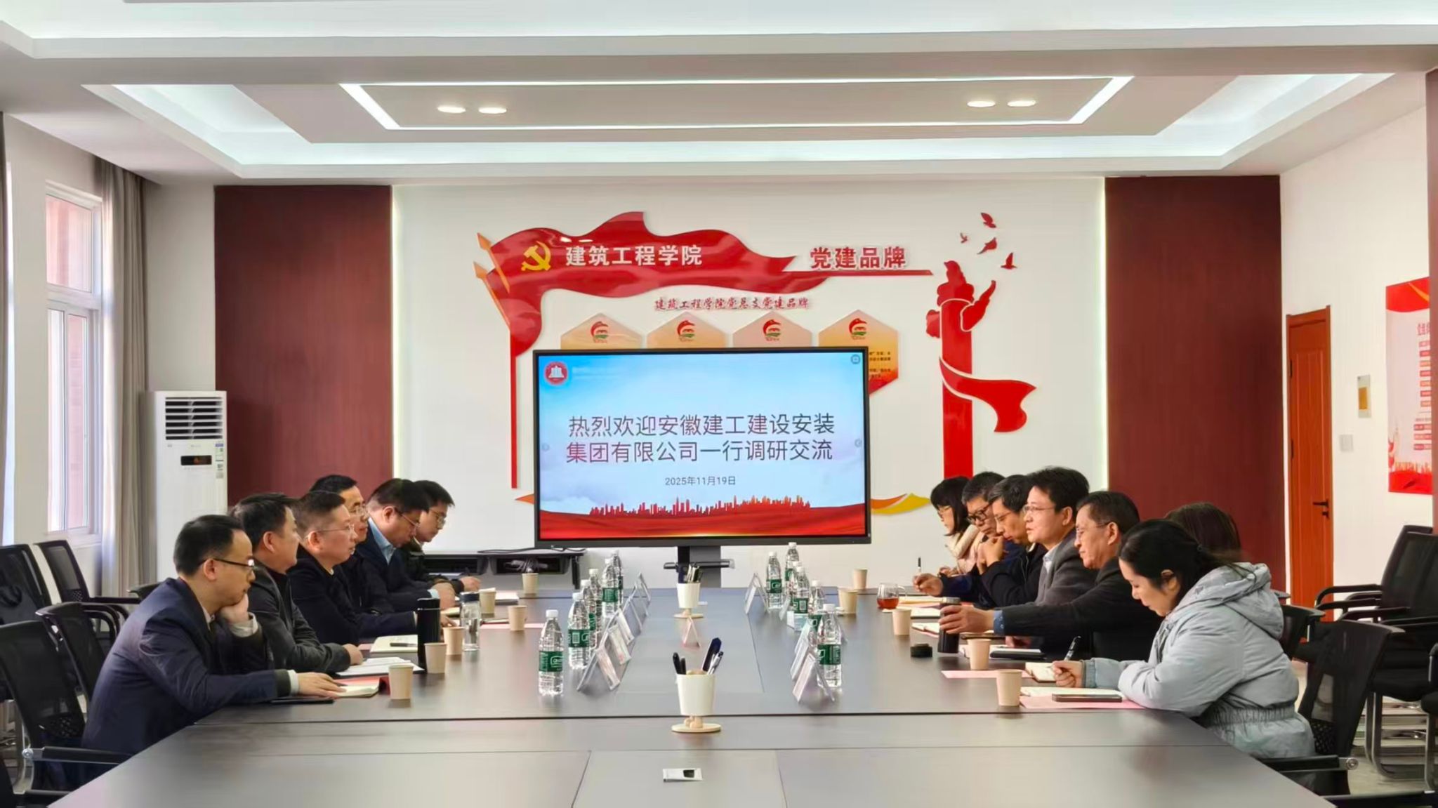 2025年11月19日上午,安徽建工建设安装集团有限公司党委书记、董事长朱珍宏一行赴awc777万象城娱乐官网建筑工程学院调研交流。学校党委委员、副校长苏有良热情接待,建筑工程学院党政负责人、电气工程学院院长及相关博士教师参加了交流座谈。