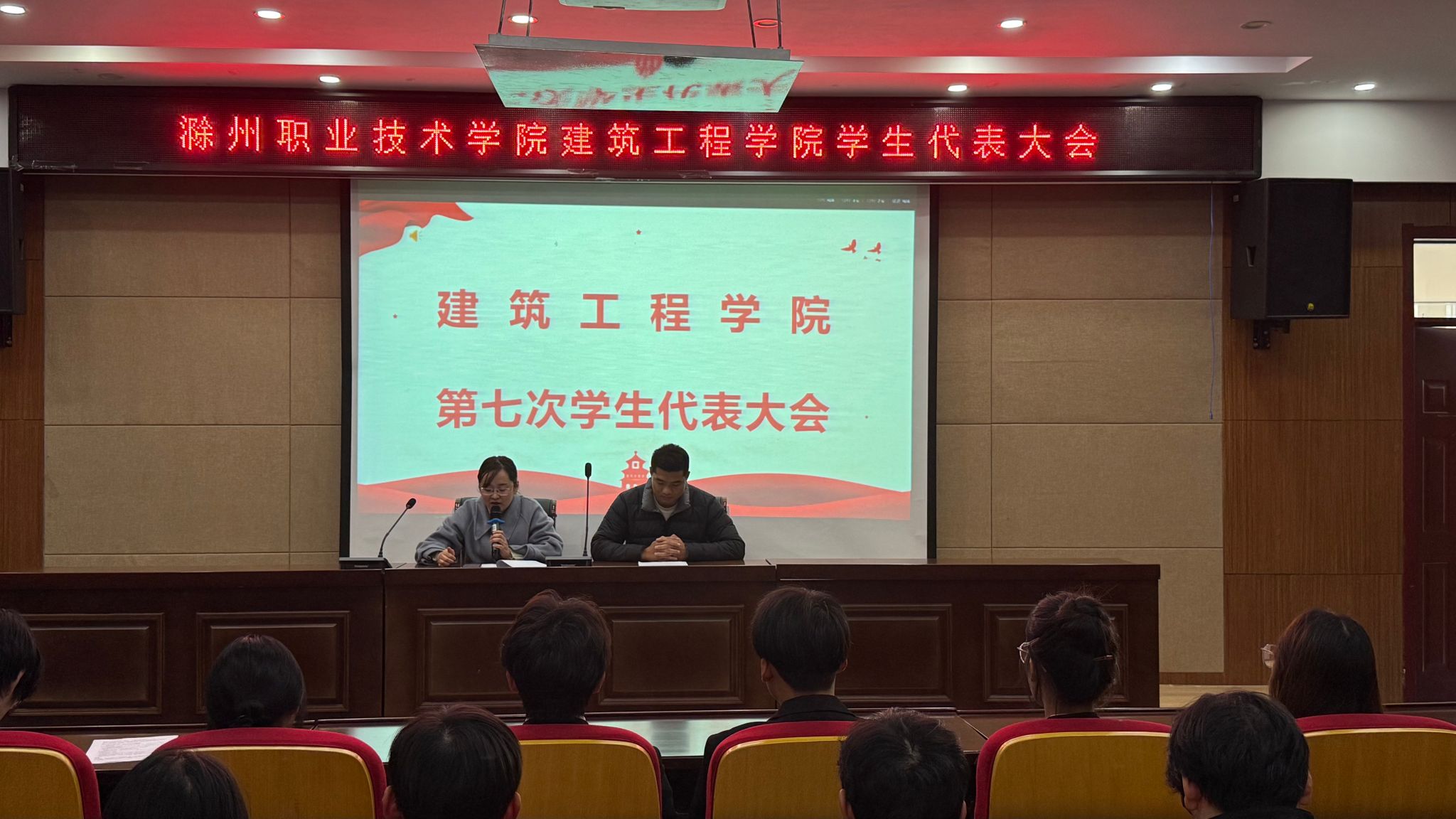 11月26日,awc777万象城娱乐官网建筑工程学院第七次学生代表大会在南阶205隆重举行。建筑工程学院党总支书记朱婷婷、团总支负责人吴超伟以及来自各年级各班级的120余名学生代表齐聚一堂。