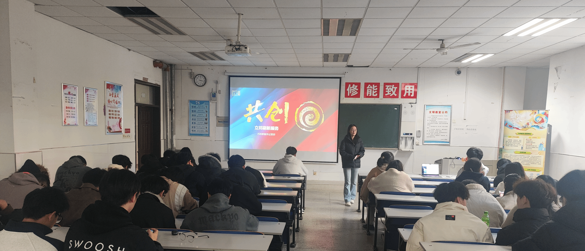宣讲人员向在场毕业生全面介绍了公司的发展历程、核心业务、企业文化、人才培养体系及此次招聘的岗位需求、薪资待遇、晋升路径等关键信息。随后,重点解读了应用服务专员、家装服务专员、刷新运营专员等热门岗位的任职要求,并强调公司重视青年人才培养,入职后将为新员工提供系统的岗前培训、导师带教及多元化的职业发展平台,鼓励同学们结合自身专业特长和职业规划积极投递简历。