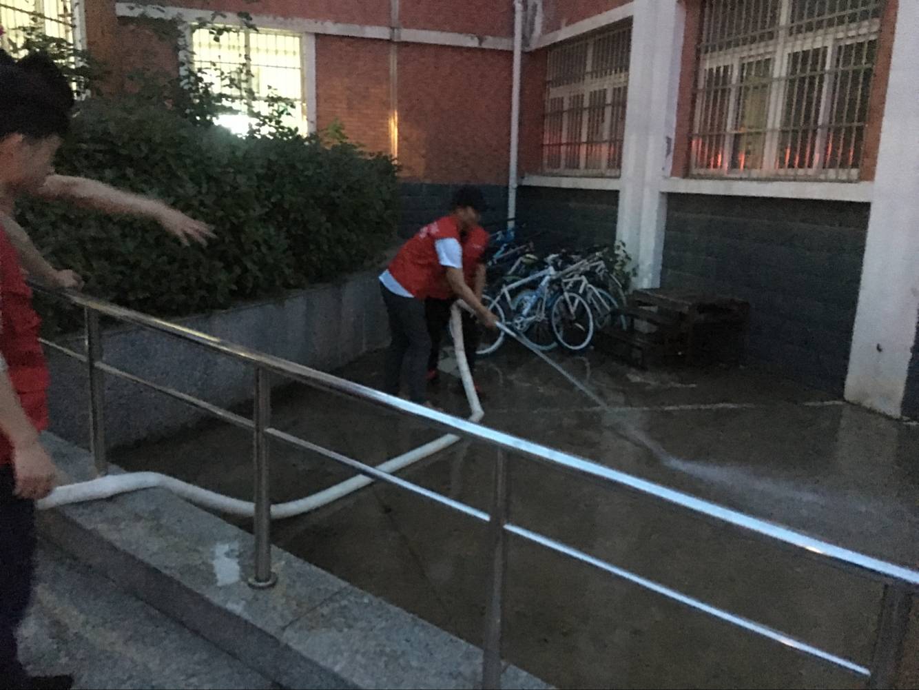 土木系学生会积极组织学生会志愿者进行排污行动。土木系学生会志愿者们顶风冒雨在污水中辛苦工作数小时,梳理排水道,清理垃圾。为志愿者的吃苦奉献精神点赞!