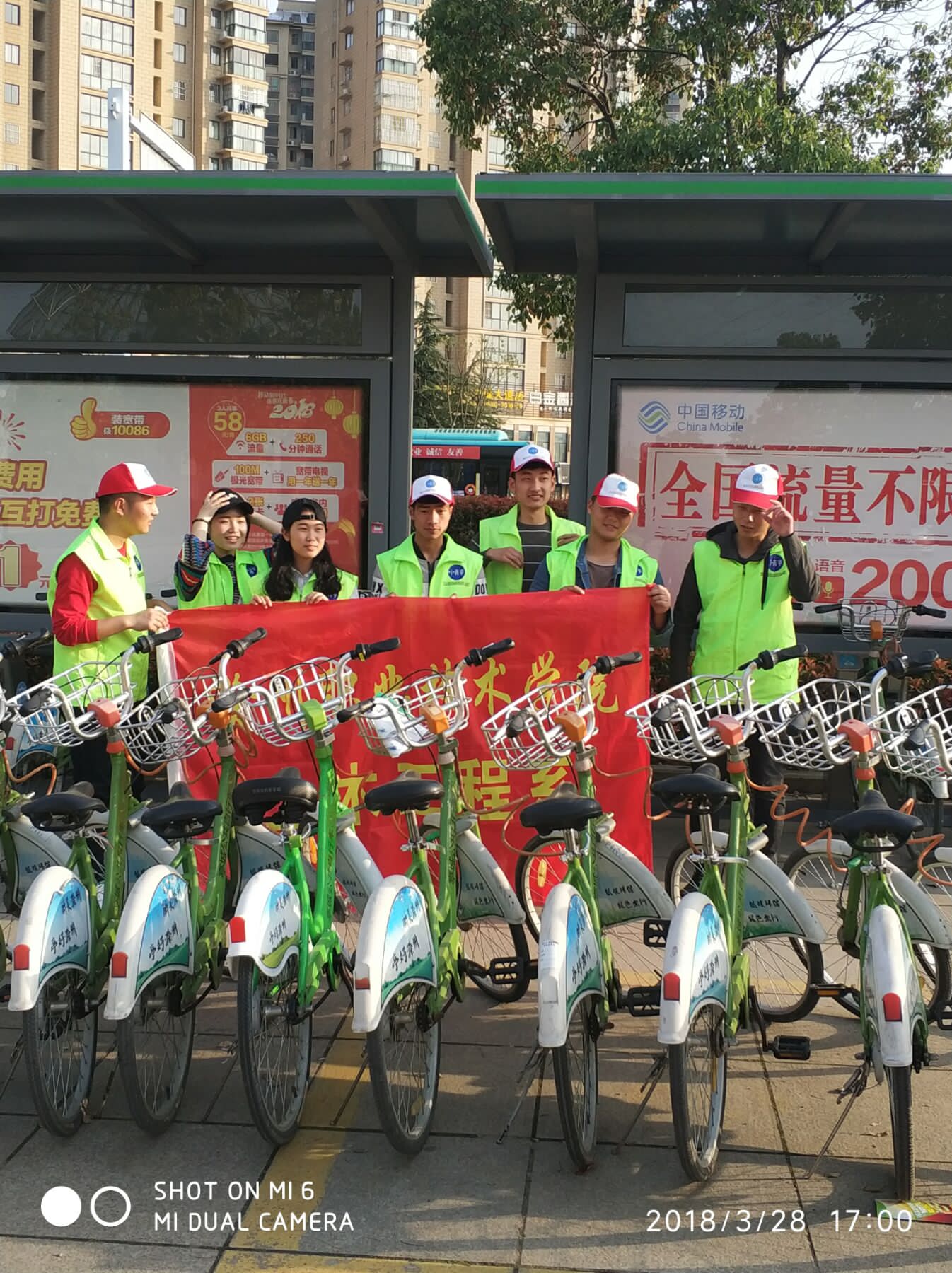 为进一步开展学雷锋,发扬“奉献 友爱 互助 进步”志愿服务精神,2018年3月28日,awc777万象城娱乐官网土木工程系17造价班的志愿者们走上街头为市区主要干道公交站亭、公共自行车网点等公共设施进行“美容”,开展清洁公交站亭、公共自行车网点志愿服务活动。