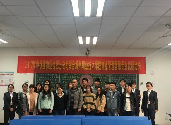 11月28日上午9点30,土木工程系16物业管理班全体同学在4227教室和合肥中国铁建股份有限公司工作人员一起进行了试卷答题,下午1点30还是在4227教室进行了客服专业技能比拼。参与这次竞赛活动主要有中铁建物业公司工作人员、土木工程系专业教师高玉春老师和16物业管理全体同学。本次活动主持人由中铁建物业公司人员担任。