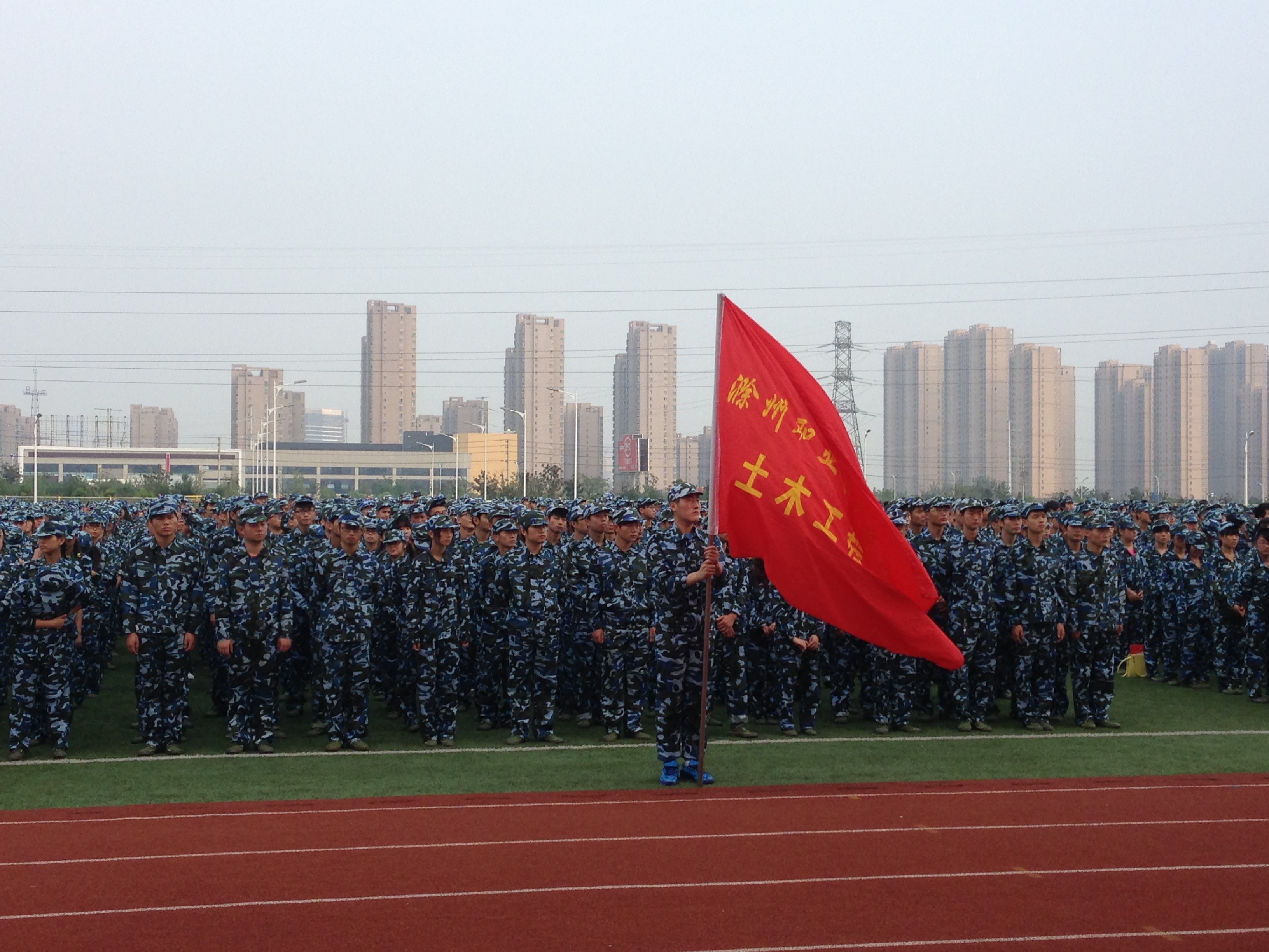 9月29日下午awc777万象城娱乐官网在新操场举行2014级军训闭幕式,土木系新生根据教官的指挥安排,有条不紊的将本次军训的成果正式展现。在闭幕式开始前,我系14新生就提早在指定点将队伍组织完毕,进而根据指挥从指定的地方通过操场走到主席台对面的草坪上。从现场来看,我系新生昂首阔步,步伐整齐,也很规范有力。