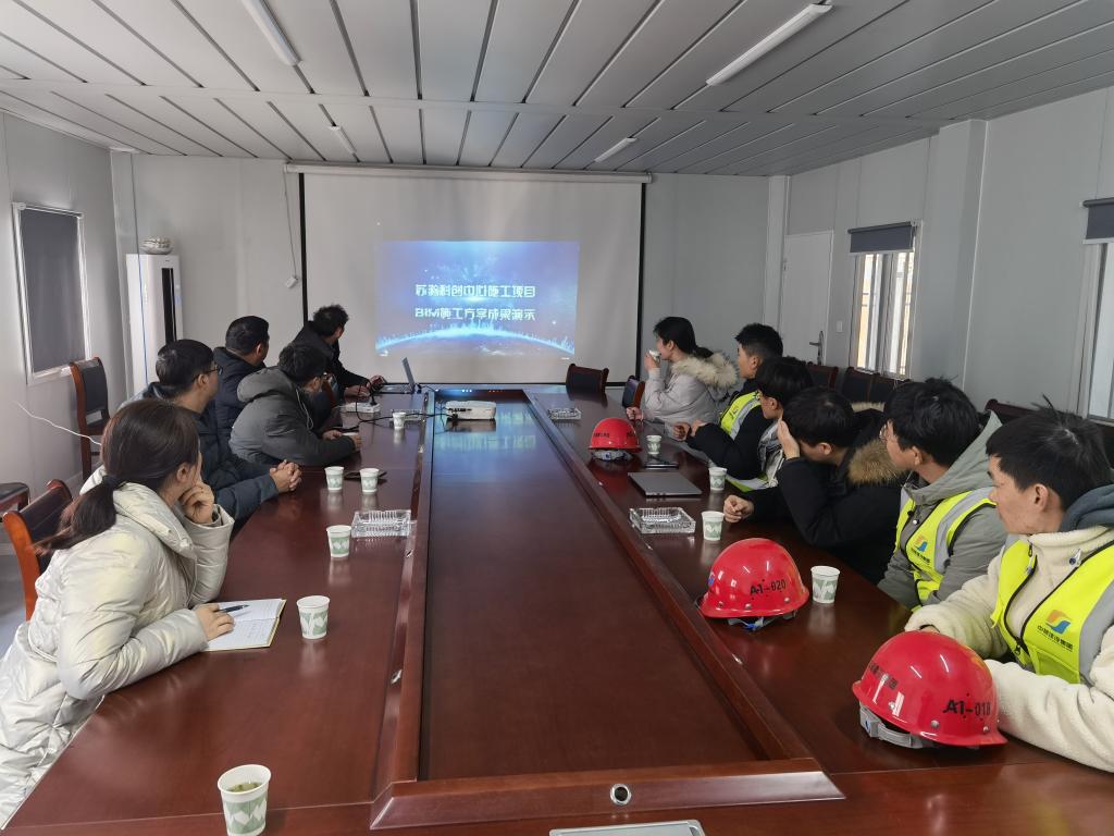 双方就技术问题进行了深入交流,并对未来合作的可能进行了探讨。项目部为老师们展示了项目的BIM资料,苏滁科创中心项目保底创“黄山杯”,力争创“鲁班杯”,按“安全质量标准化示范工地”标准实施,争创全国绿色施工示范工程,争创安徽省新技术应用示范工程。