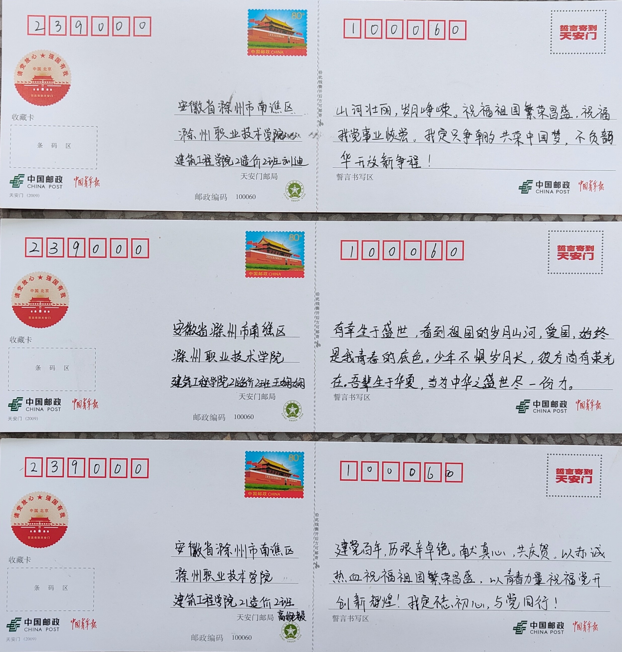 同学们积极参与,以真挚的感情抒发对祖国的热爱,通过书写明信片的方式,抒发铮铮爱国誓言,深化思想引领,凝聚青年力量,以满怀赤诚书写强国誓言,以无悔青春谱写奋斗之歌。