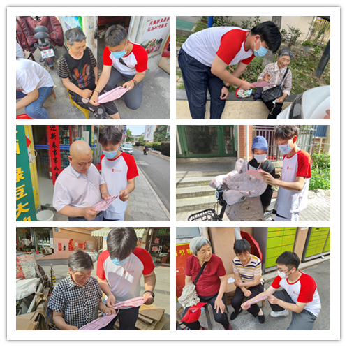 活动中,小分队成员给社区居民分发宣传单,科普环境保护、环境整治、卫生知识和防疫的相关知识,通过宣传提高和增强广大群众的环保意识和卫生知识。