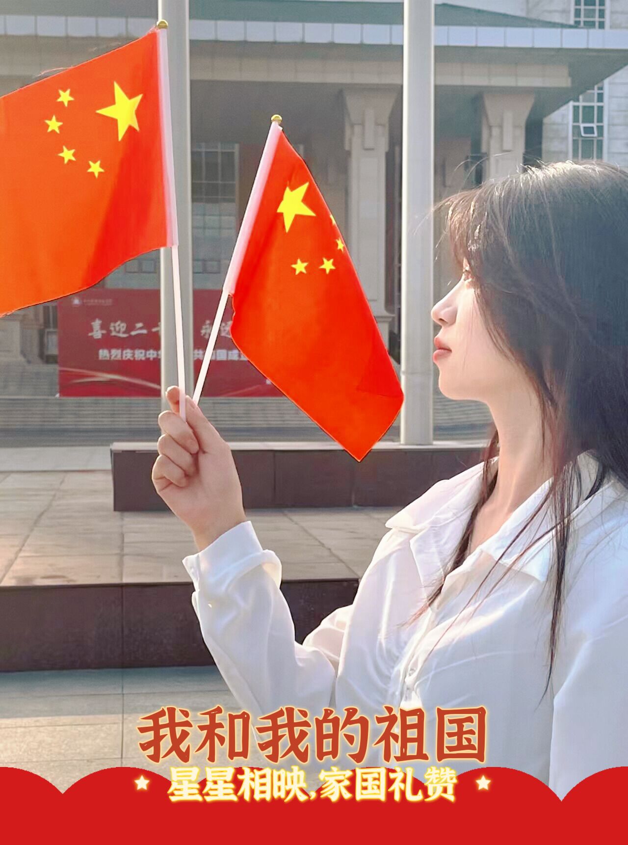活动中,同学们创意十足,精心设计合影摆拍,一张张与国旗的合影照片、一句句对祖国的祝福纷至沓来,晒出了对祖国母亲的热爱,表达了对祖国母亲美好真挚的祝愿。鲜艳的五星红旗、灿烂的笑脸,他们用镜头记录下了一幕幕温馨感人、正能量满满的瞬间,一个个朝气的面孔在国旗下定格和绽放。
