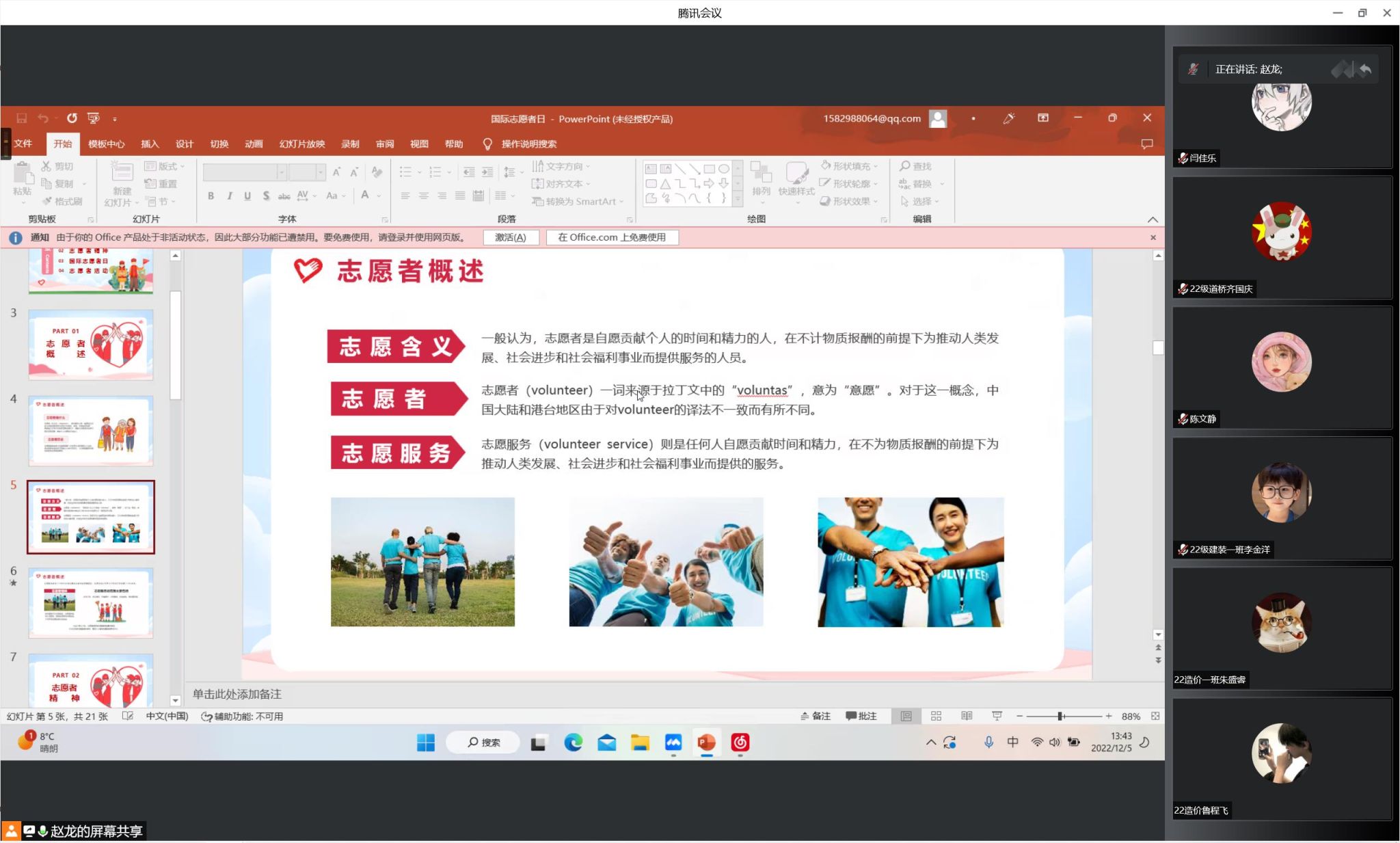 建筑工程学院“向阳花”志愿服务队在“12.5”国际志愿者日来临之际,为进一步宣传“奉献、友爱、互助、进步”志愿精神,大力弘扬“学习雷锋、奉献他人、提升自己”的志愿服务理念,组织开展线上宣传国际志愿者日活动。
