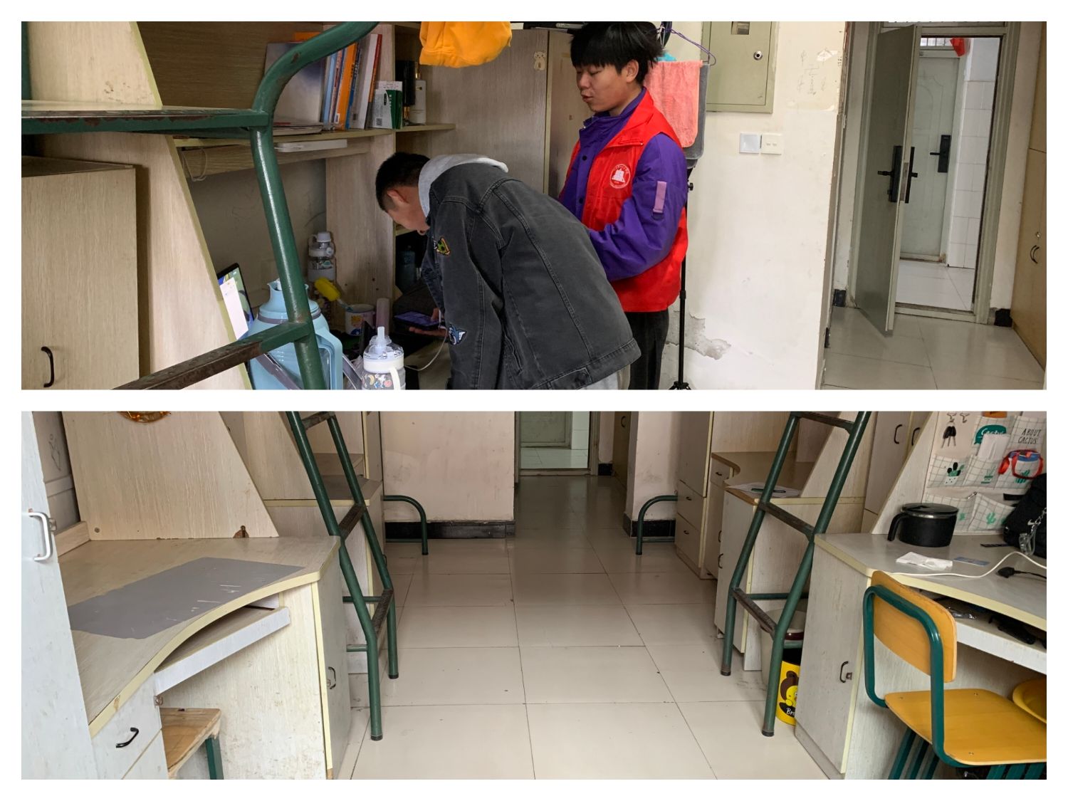 在整个过程中,生活权益部志愿者们身穿红色马甲,认真检查每一个宿舍的使用设施,细心地给予同学们生活建议,还耐心地对学生做卫生指导。除此之外,志愿者们还特别提醒和叮嘱学生注意寝室财物安全及用电安全,同学们也认真听取意见,主动将有危险的地方进行改善。