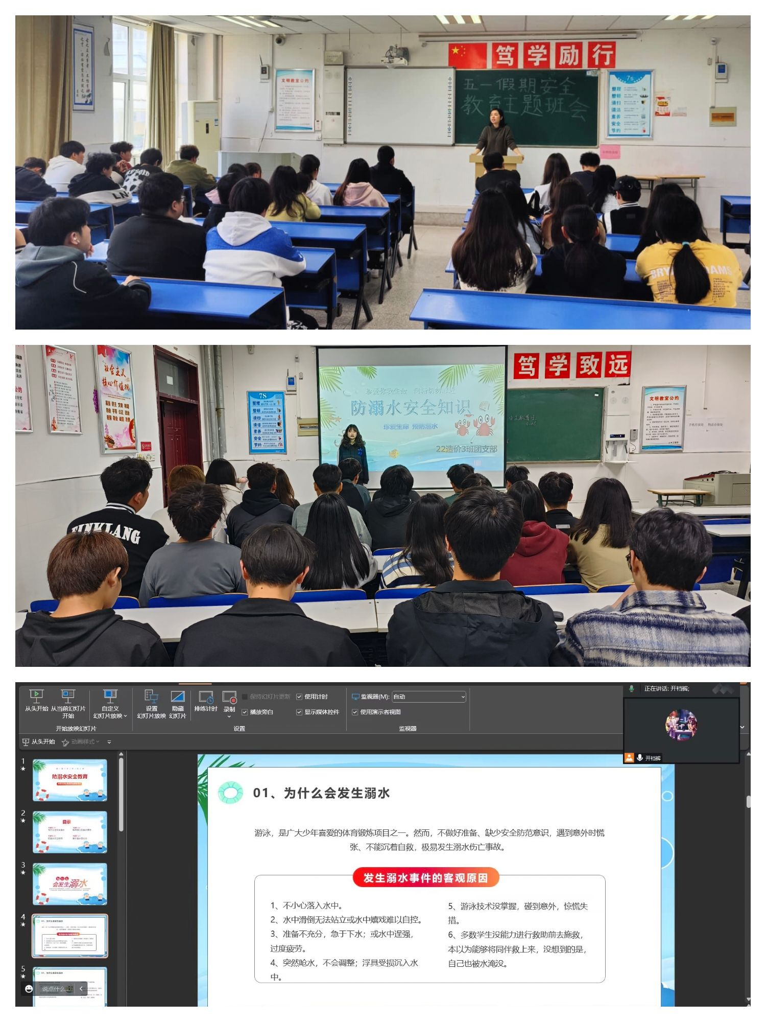 为切实做好学生五一假期安全教育工作,力促防溺水安全教育宣讲扎实有效开展,提高学生的自我保护能力,4月26日,建筑工程学院组织开展“五一假期防溺水安全”主题班会活动。