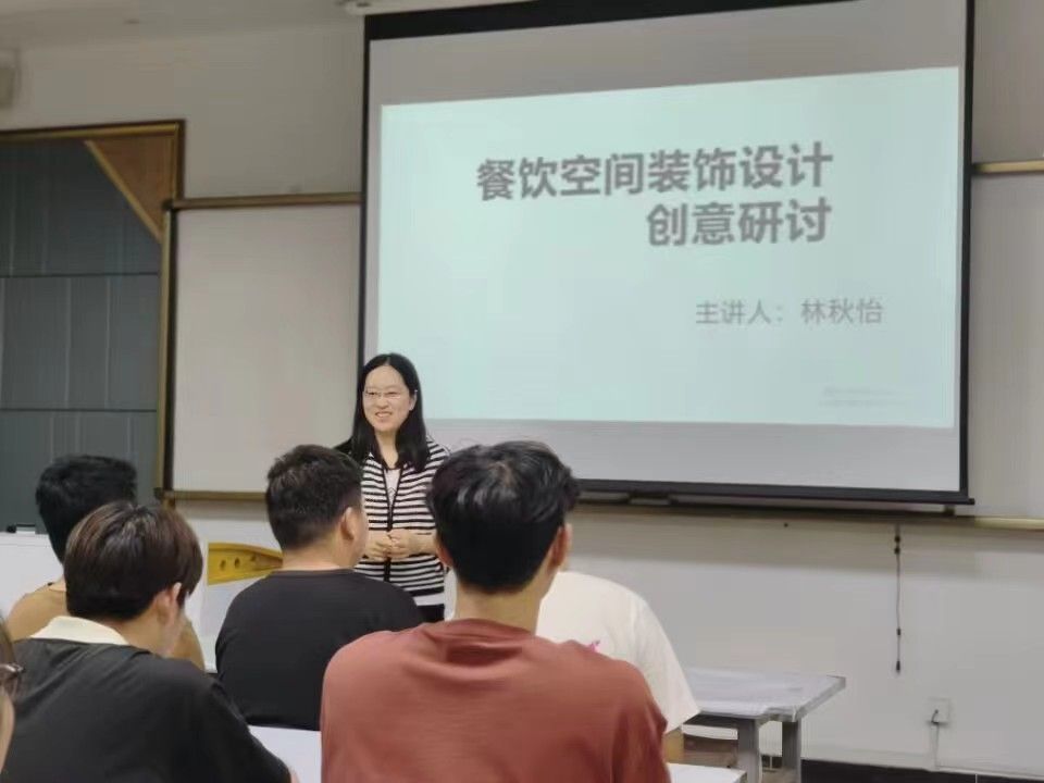 2023年4月25日下午14:20-15:50,建筑工程学院林秋怡副教授在建筑技术综合实训管JG102教室,开展了题为“餐饮空间设计”的讲座,展示了餐饮空间项目设计并和学生一起探讨了动线设计以及空间深化设计,建筑工程学院相关专业学生听取了讲座。