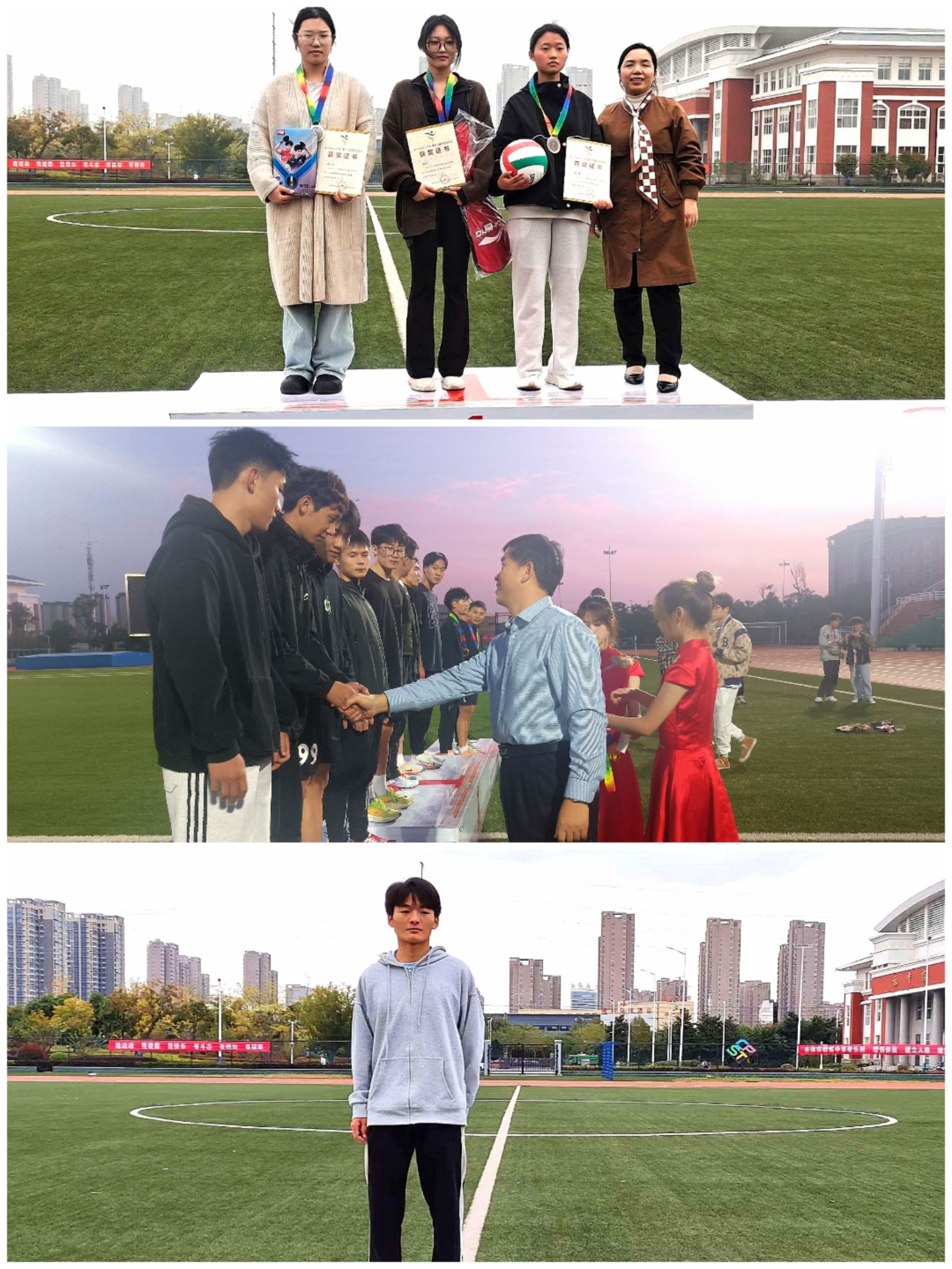 此次运动会设有男/女子组:100米、200米、400米、800米、1500米、3000米、4×100米接力、4×400米接力、跳高、跳远、铅球等项目。得知这一消息时,同学们根据自身擅长或者爱好积极报名。在运动场上,在红色的跑道上:运动健儿们蓄势待发,一声枪响如箭离弦,势必要跑出自己最好的成绩;在铅球场上:运动健儿们信心满满,瞄准目标奋力一抛,将自己手中的球抛向远方;在跳高场上:运动健儿们蓄力助跑,纵身跨越完美落地,势必要做到最好;在沙池旁:运动健儿们俯身定神,每一次腾空都迸发出力量,每一次腾空都书写着激昂。