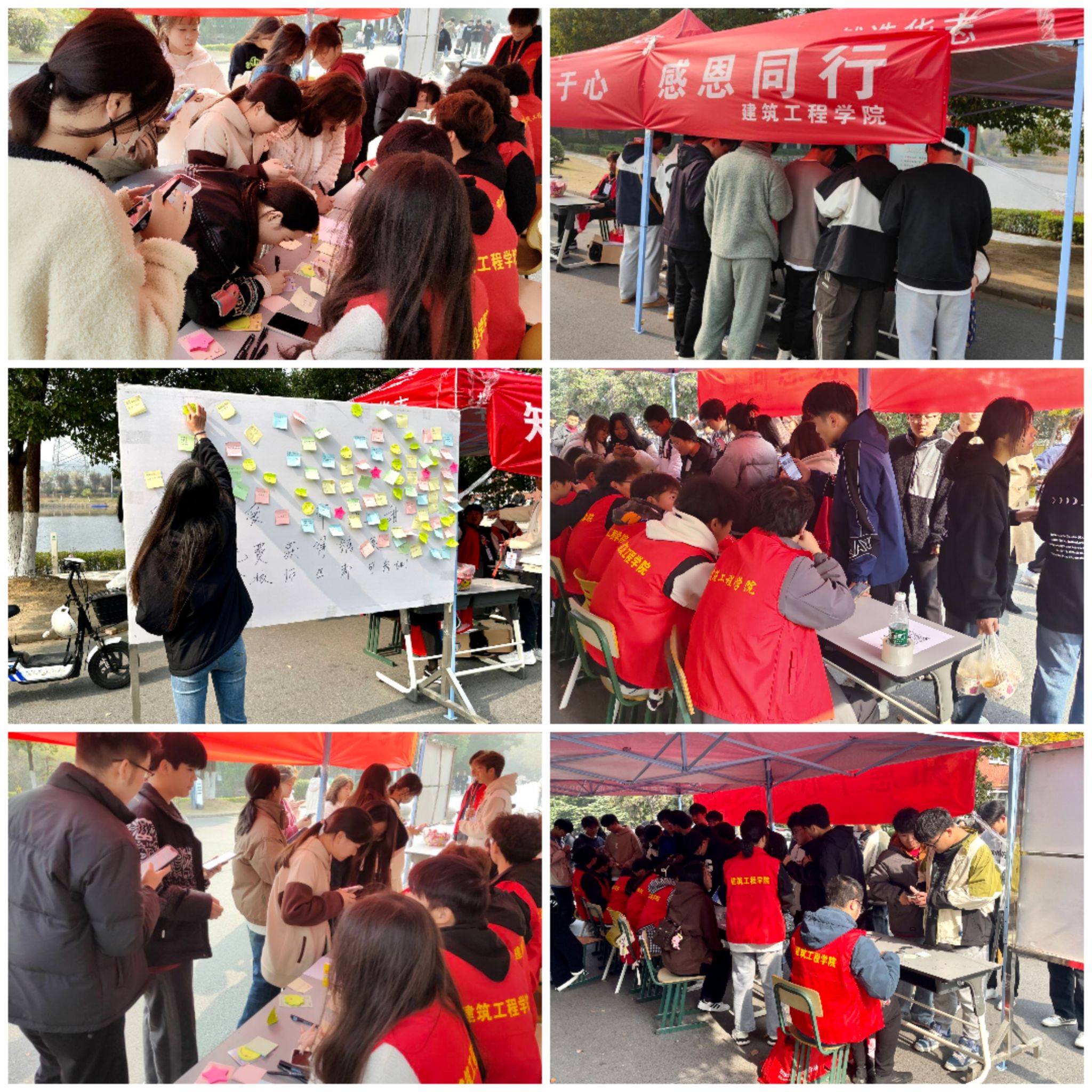 为了弘扬中华民族的传统美德,全面提升学生的思想素质。建筑工程学院在11月23号在食堂旁开展感恩节活动,邀请全校学生前来参加。