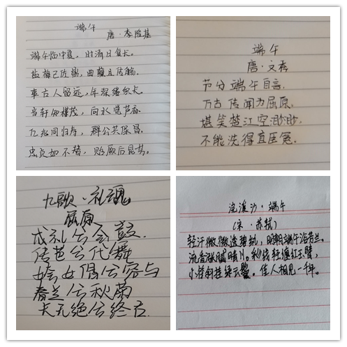 各支部开展线上、线下主题团日活动,同学们回顾端午渊源,了解节日传统,温习屈原爱国故事,感悟中华传统文化的源远流长;经典古诗词抄写活动,让学生在领略中华文化魅力内涵的同时,接受了爱国主义和传统美德教育;防疫卫生大扫除活动中,大家将教室、宿舍卫生打扫得干净整洁,有效夯实了疫情防控基础,传承了防疫祛病、避瘟驱毒的端午习俗。节日期间,同学们为家人包粽子、制香囊、挂艾草,将中华传统文化精神以实践的方式落地生根。