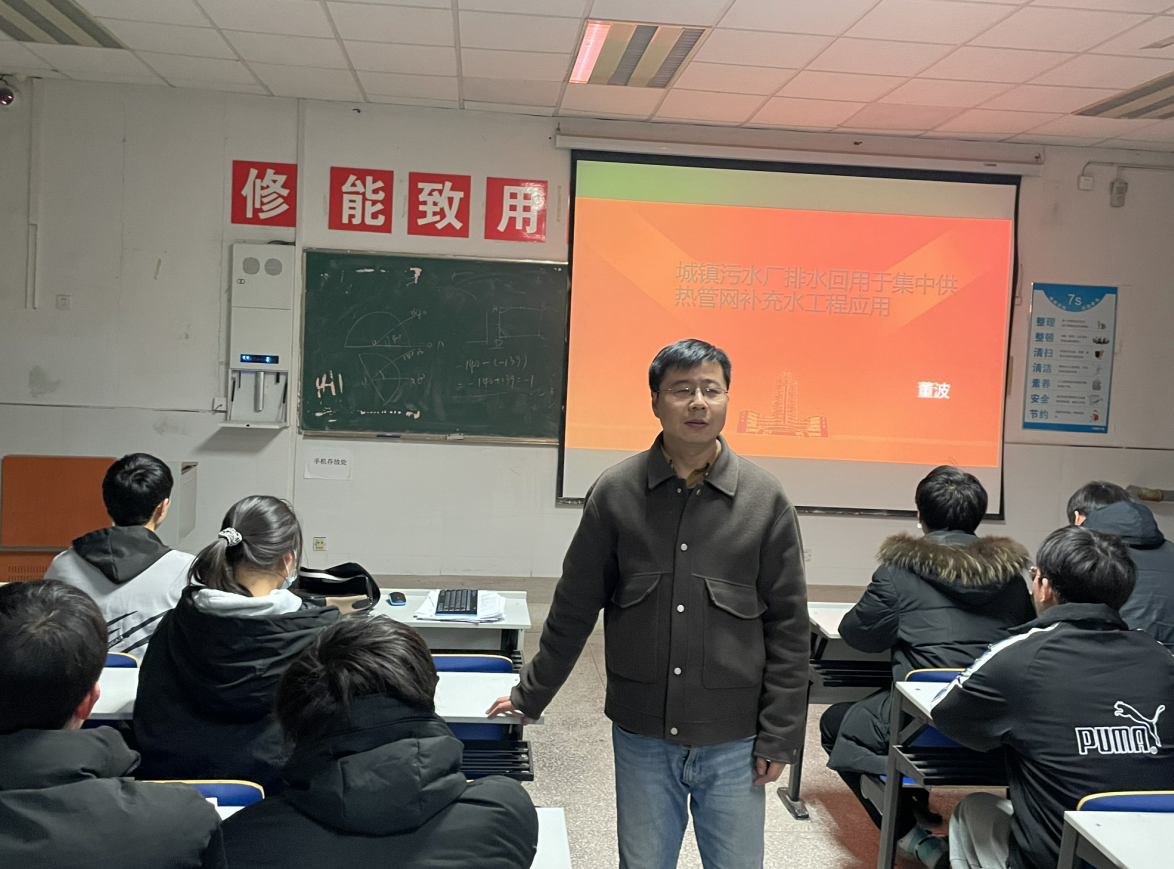 12月5日下午,建筑工程学院董波副教授,在4102教室举办题为“城镇污水厂排水回用于集中供热管网补充水工程应用”的学术讲座。